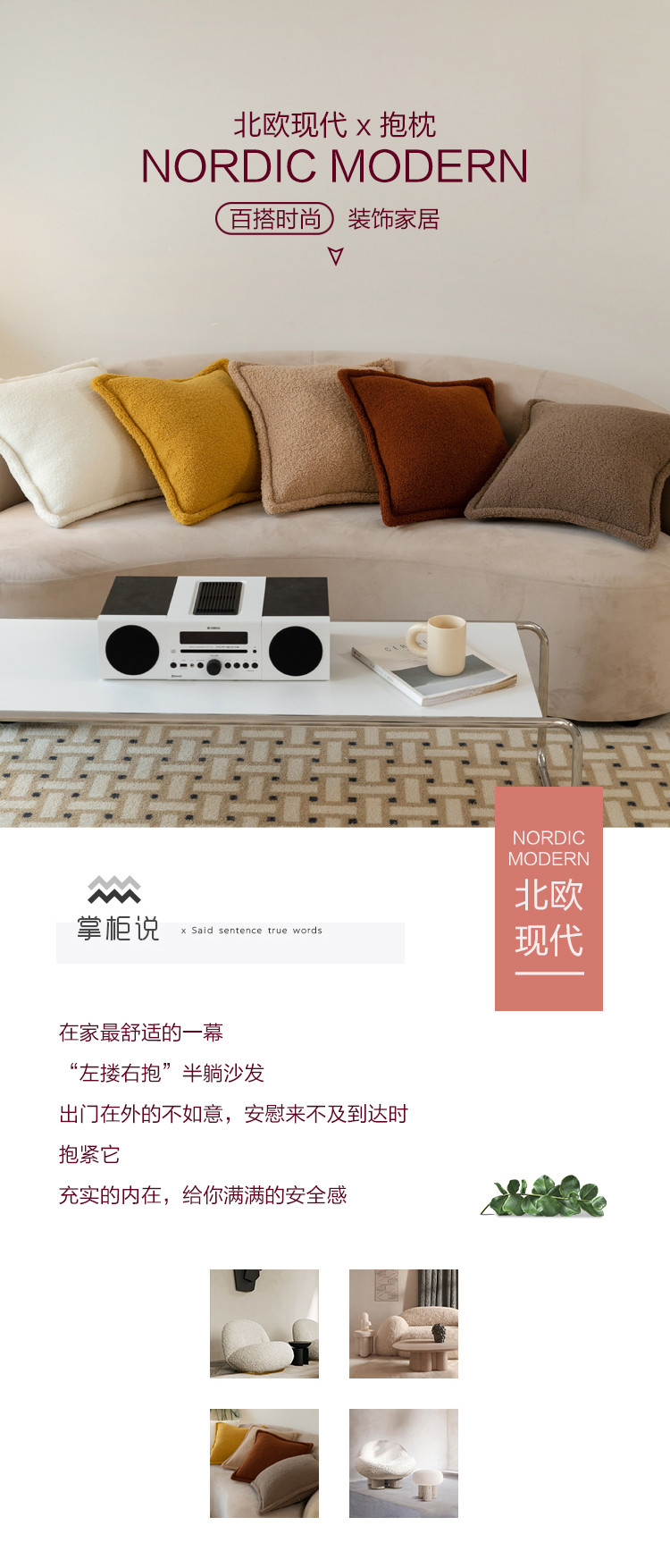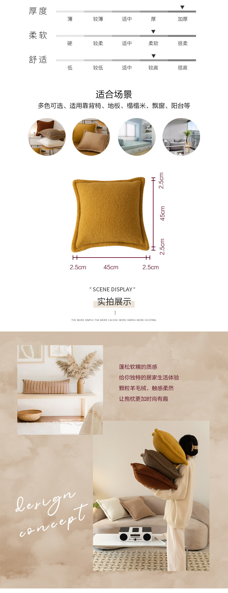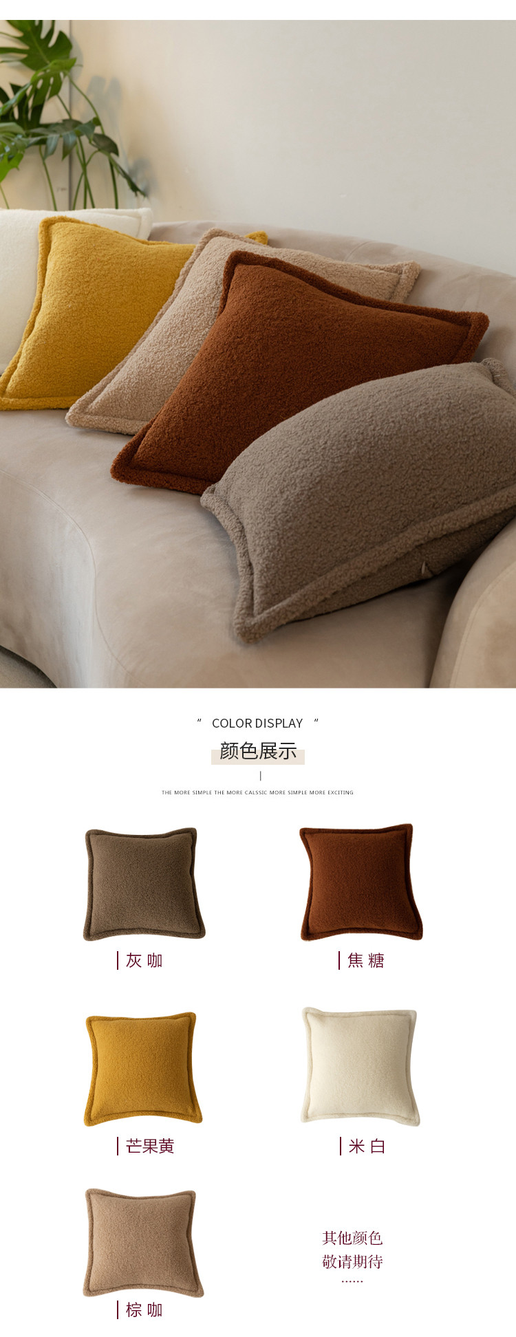 (总)美茉家居 2025新款云朵绒曲边方枕抱枕,草墨灰,枫叶红,芥末黄,米脂白,若竹青