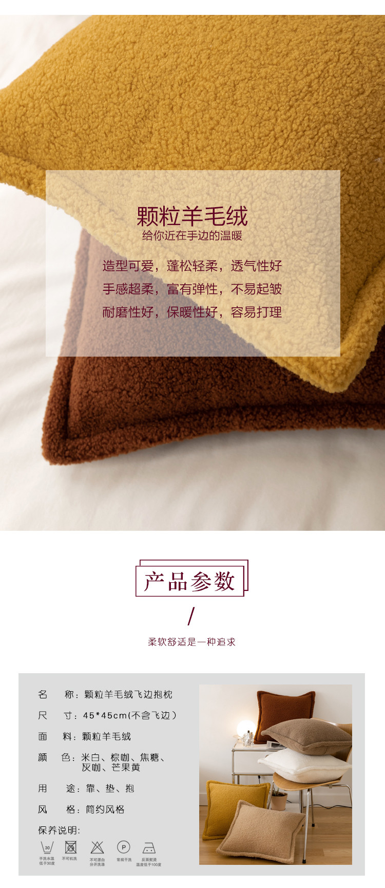 商品名称:(总)美茉家居 2021新款颗粒羊毛飞边抱枕