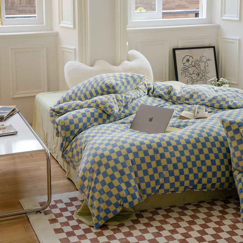 洋铭区 2022新款双色棋盘格四件套 庄园蓝格
