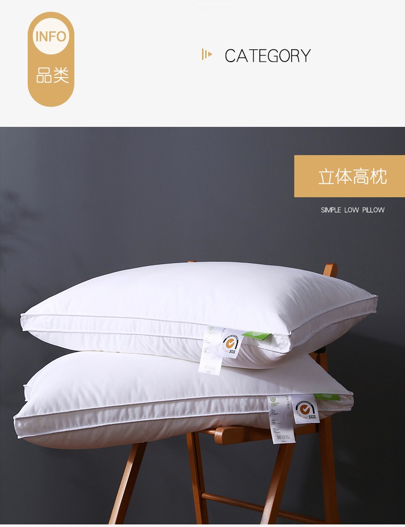 高端全棉防羽布酒店羽丝绒枕头仪征棉简约成人护颈单人枕芯软枕,全棉仪征棉酒店枕-双枕低枕,全棉仪征棉酒店枕-单边中枕,全棉仪征棉酒店枕-立体高枕