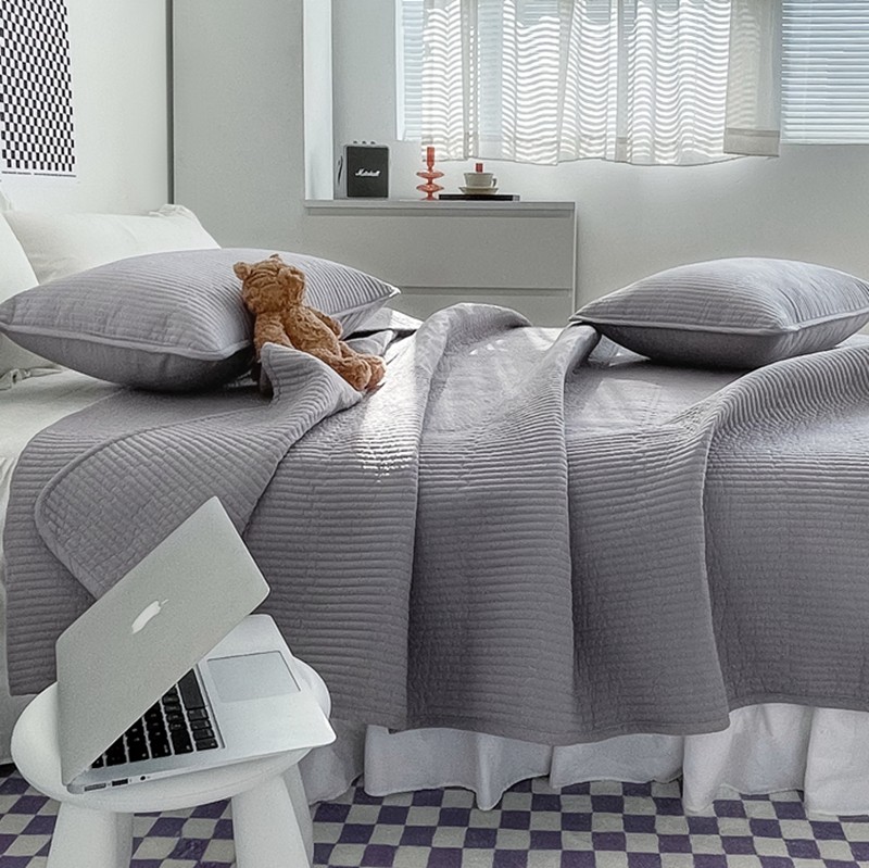 茉夕家纺 2022新款纯色床盖 高级灰