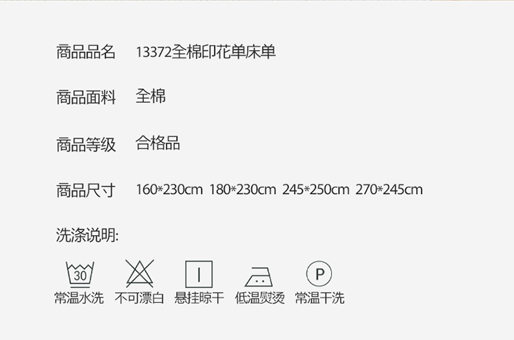 商品名称:宝齐莱 2022新款13372全棉印花单床单 半暖时光