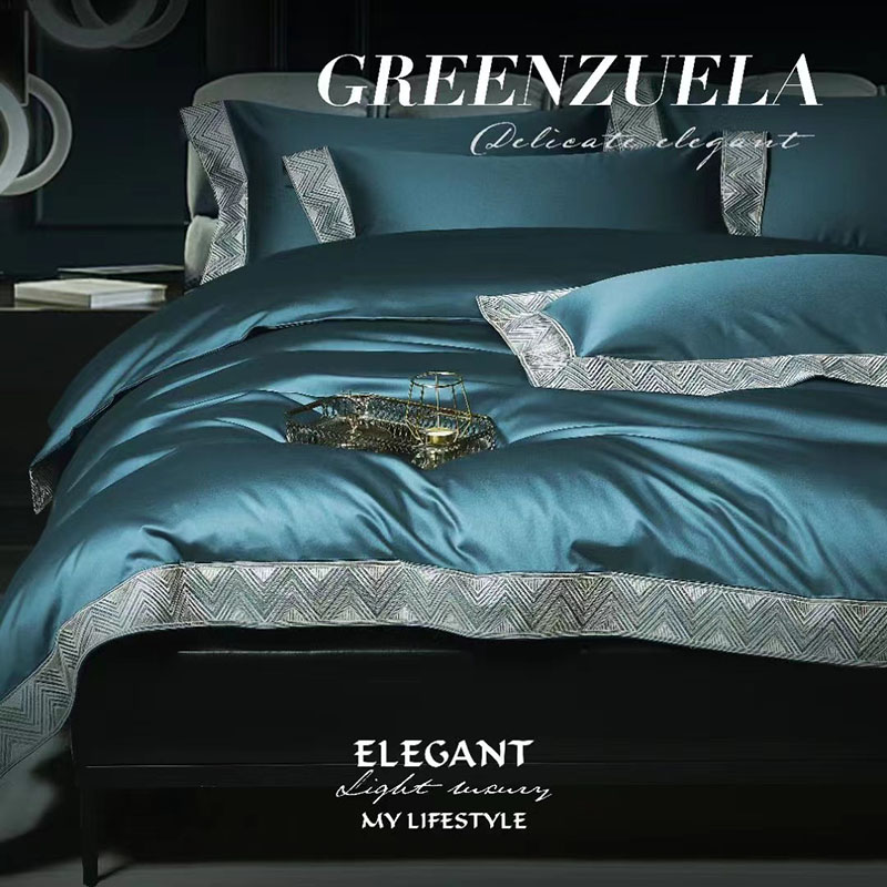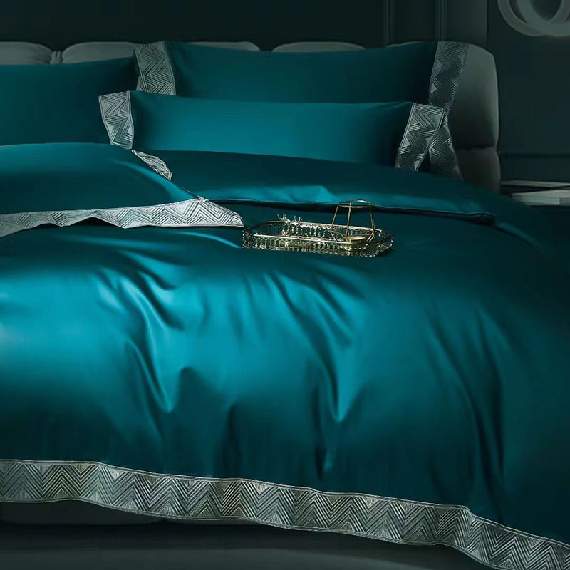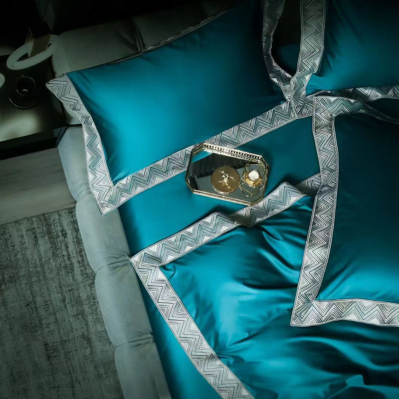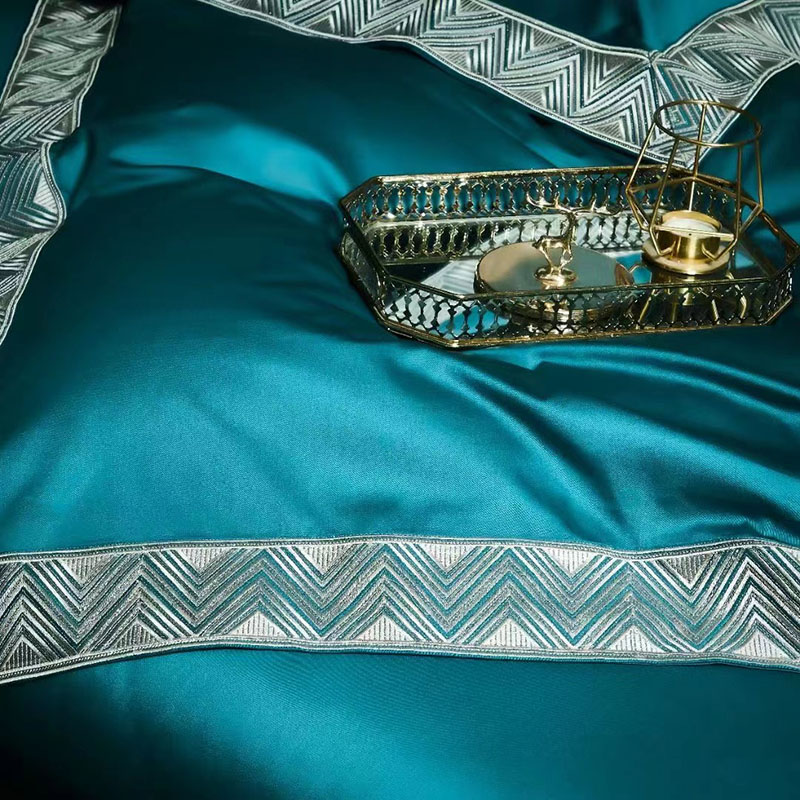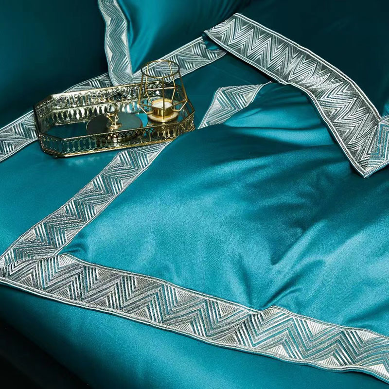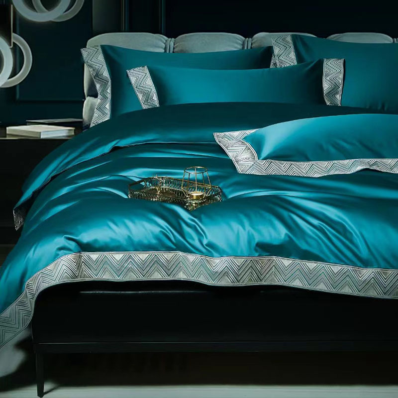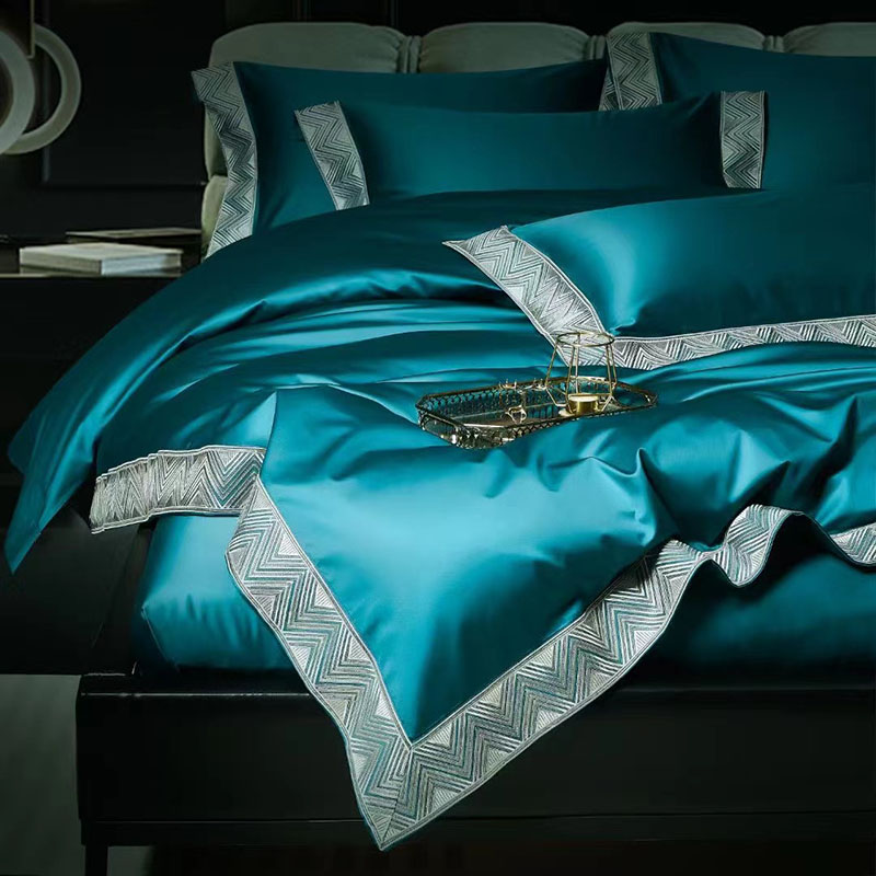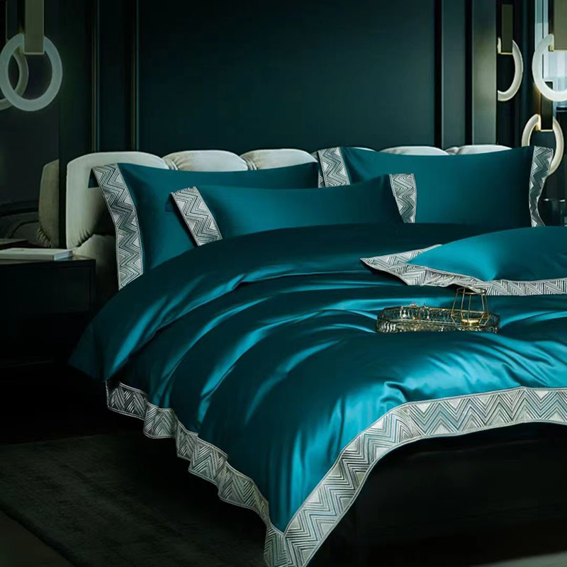 玖玖爱家纺 2022新款奢华160支四件套罗卡芙钻石蓝