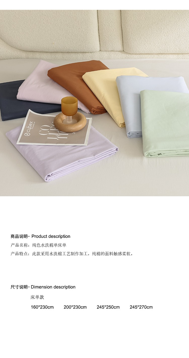 商品名称:全棉水洗棉双人床单单件纯棉北欧纯色单人学生宿舍全棉被单被罩