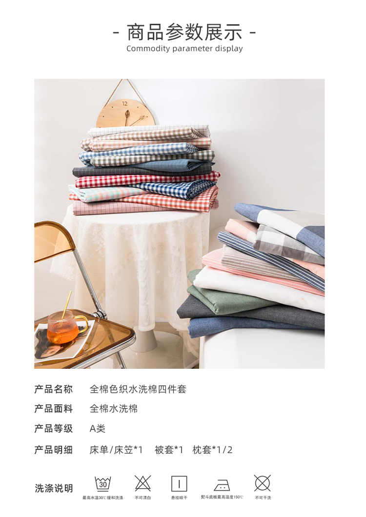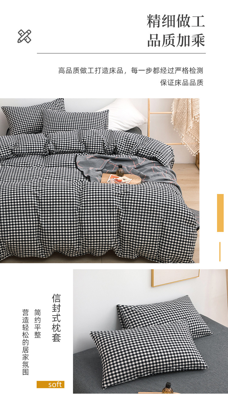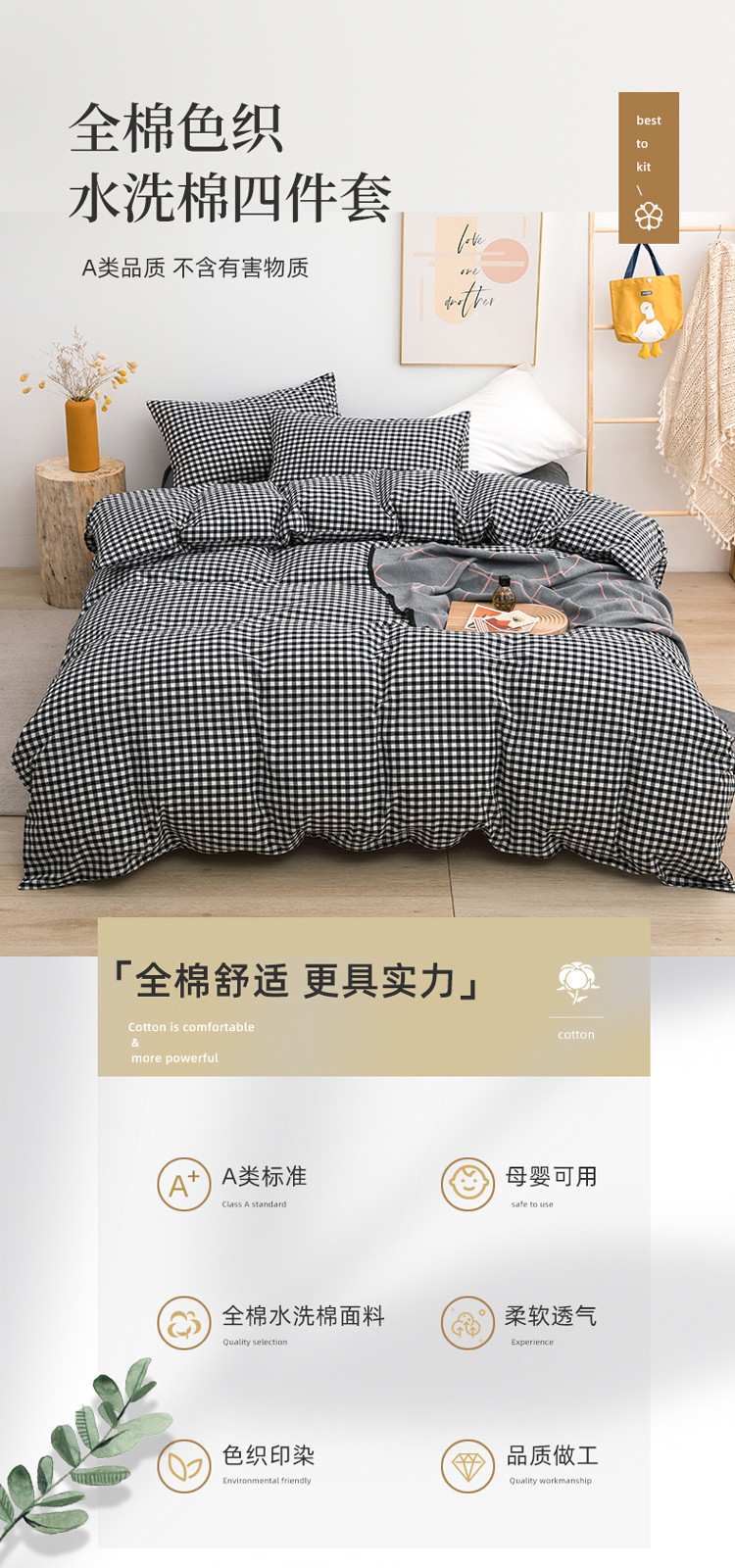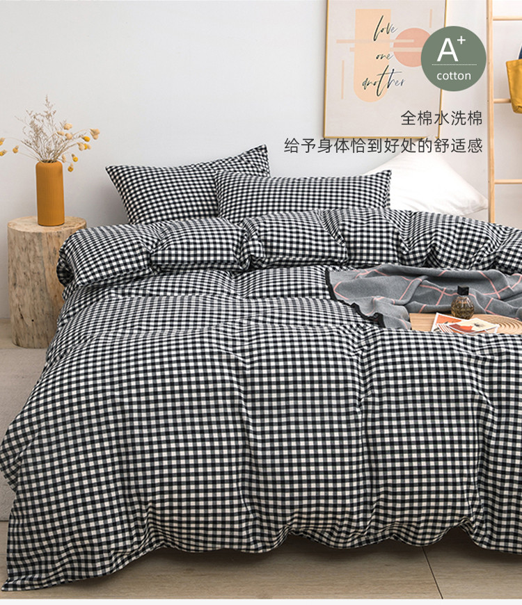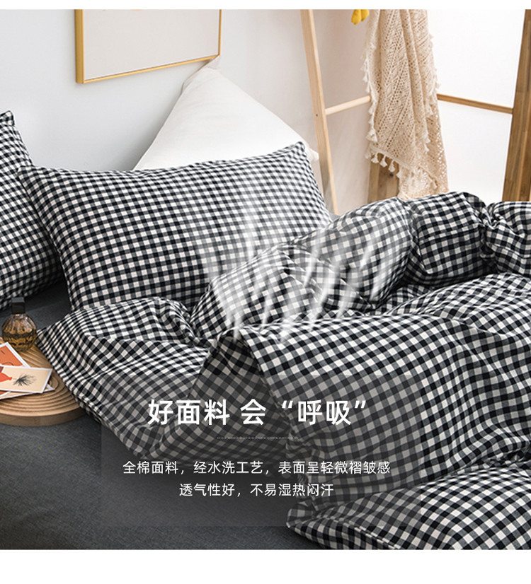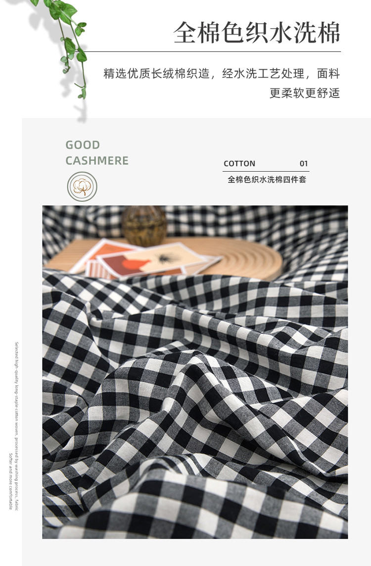 当前位置: 91家纺网 > 商品网购 > 床品套件 > 四件套 > 水洗棉四件套 > 柠萌家居 2022新款无印良品全棉色织水洗棉四件套 黑白小格