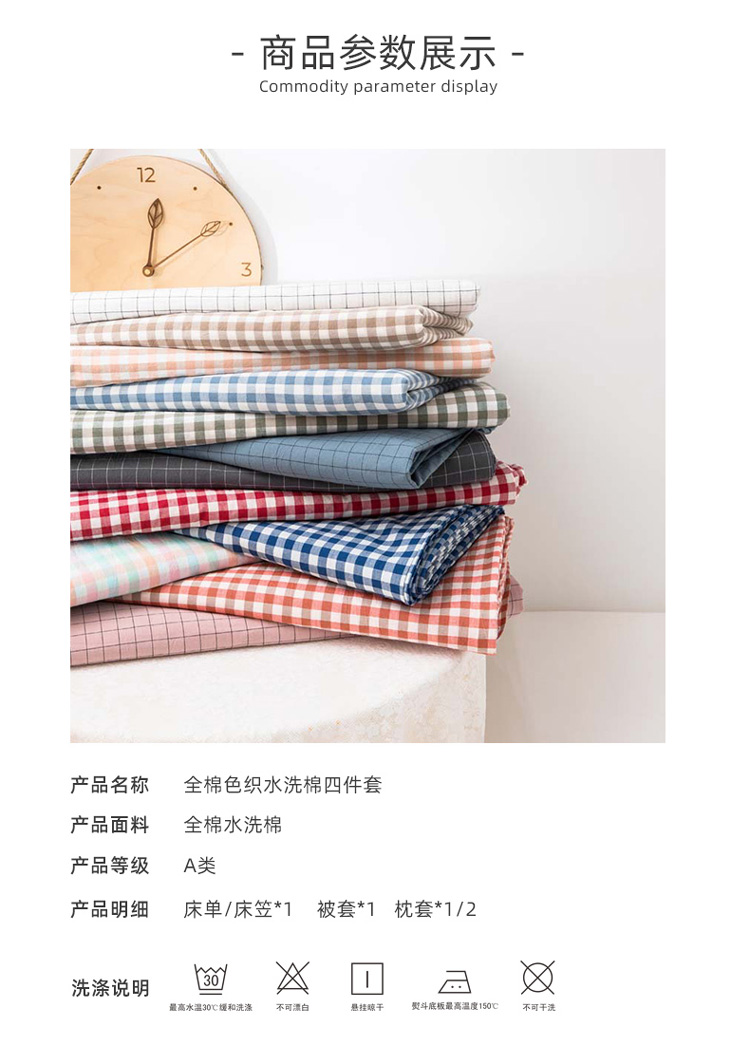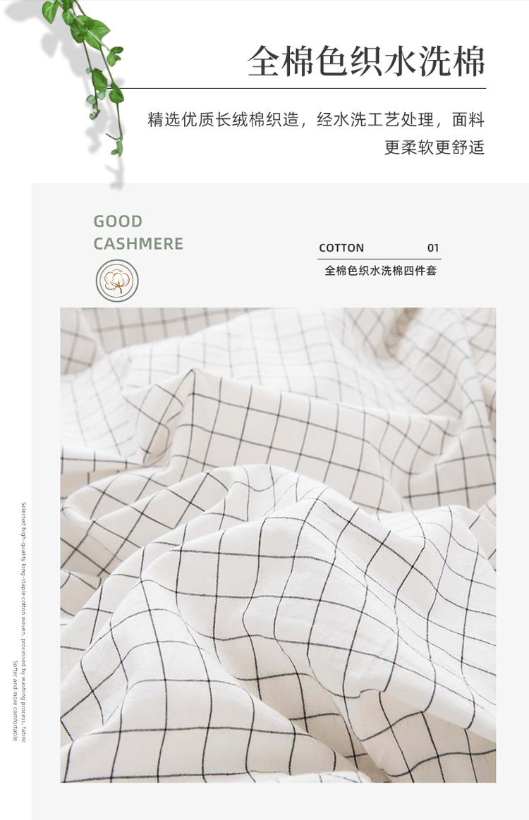 当前位置: 91家纺网 > 商品网购 > 床品套件 > 四件套 > 水洗棉四件套 > 柠萌家居 2022年新款无印良品全棉色织水洗棉四件套 小白格