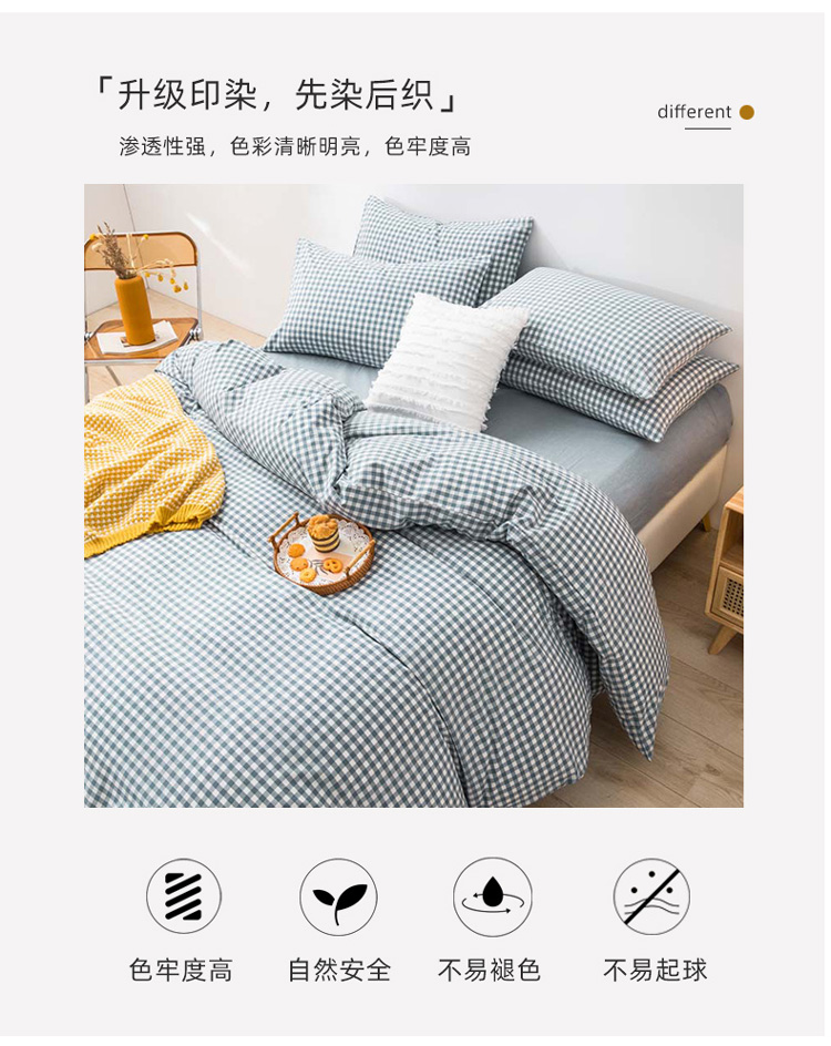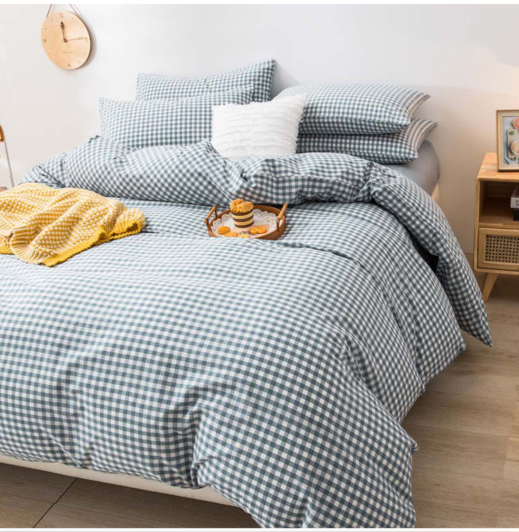 • 91家纺网 家纺一手货源 找家纺 柠萌家居 2022新款无印良品全棉色织水洗棉单被套 浅蓝小格