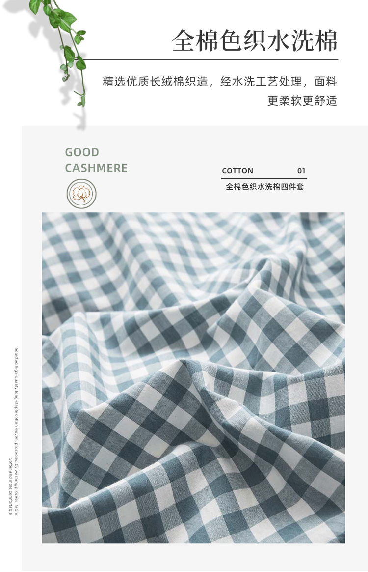 (总)柠萌家居 2026新款纯棉全棉A类色织水洗棉四件套(可定制尺寸),诺卡-咖,倾城-粉,倾城-蓝,倾城-绿,苏格兰-红,苏格兰-咖,苏格兰-卡其,组合