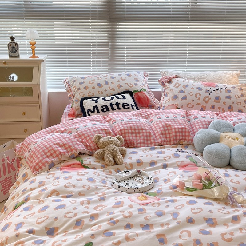 昔可家纺 2022新款13070工艺款全棉四件套 豹纹水蜜桃