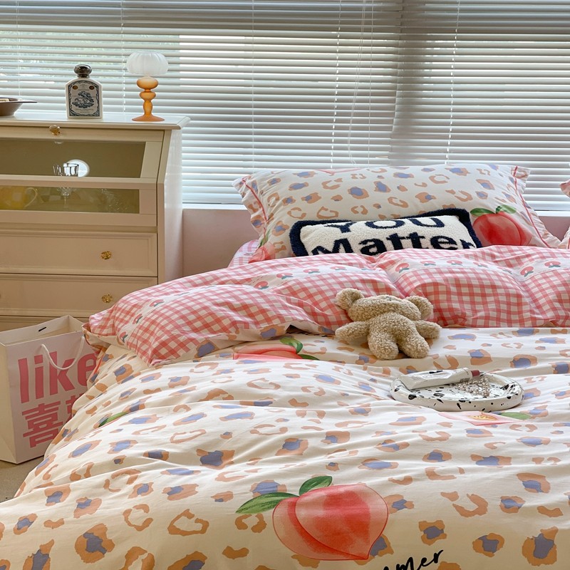 商品名称:昔可家纺 2022新款13070工艺款全棉四件套 豹纹水蜜桃
