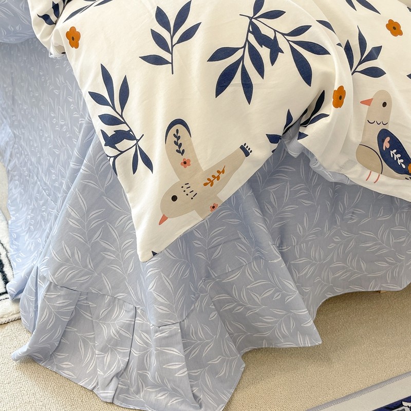 昔可家纺 2022新款13070工艺款全棉四件套 绿萦鸟啼