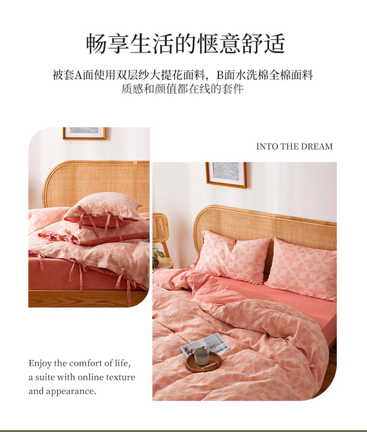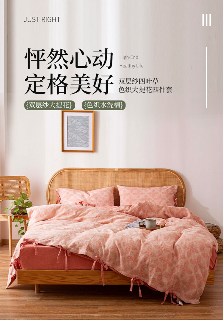 当前位置: 91家纺网 > 商品网购 > 床品套件 > 四件套 > 针织棉四件套 > 安莱生活 2022新款双层纱新三色四叶草四件套 嫩粉