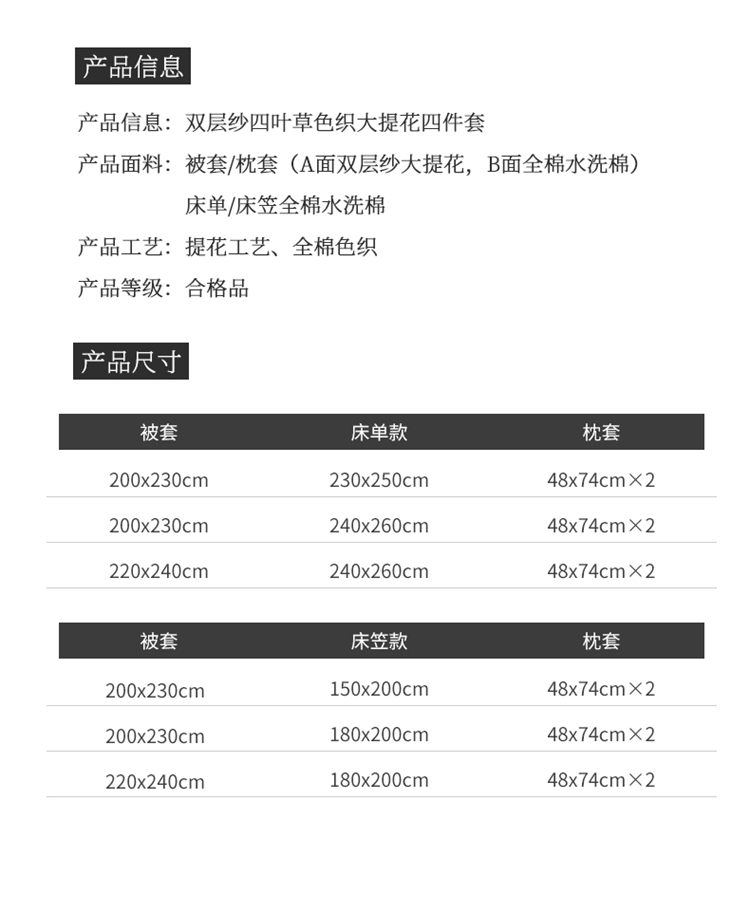 小号床笠款四件套(被套200x230床笠150x200) | ¥222.00 |