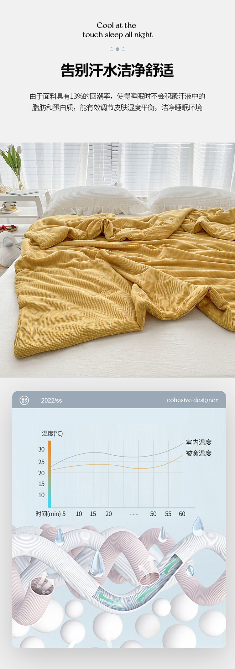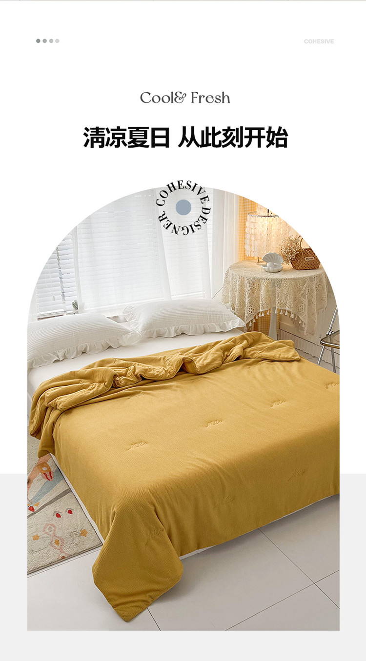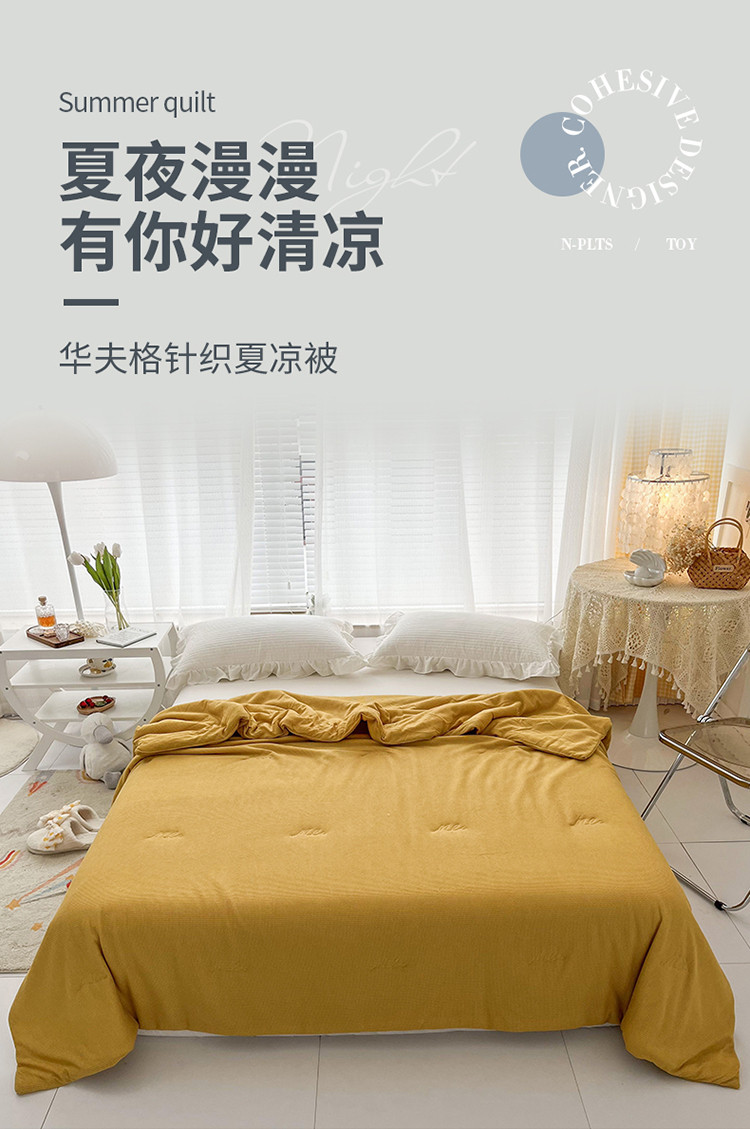 珺柔家纺 2023新款针织华夫格夏被 金色