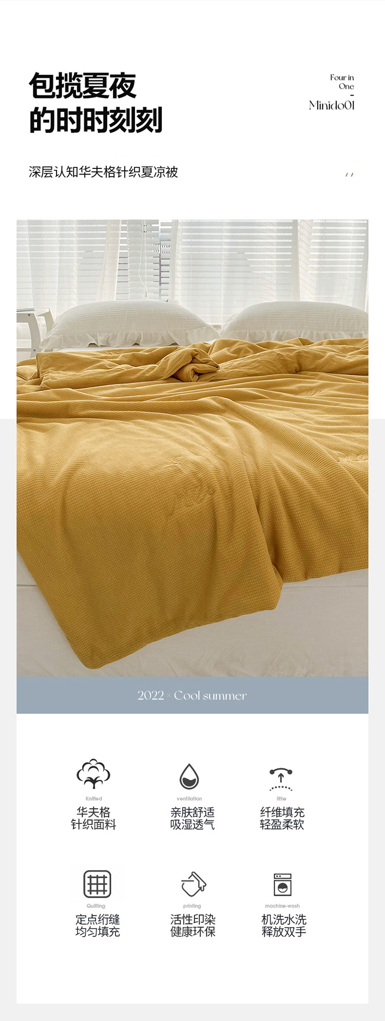 (总)珺柔家纺 2023新款针织华夫格夏被,白色,粉玉,金色,浅咖,水绿,雾霾蓝