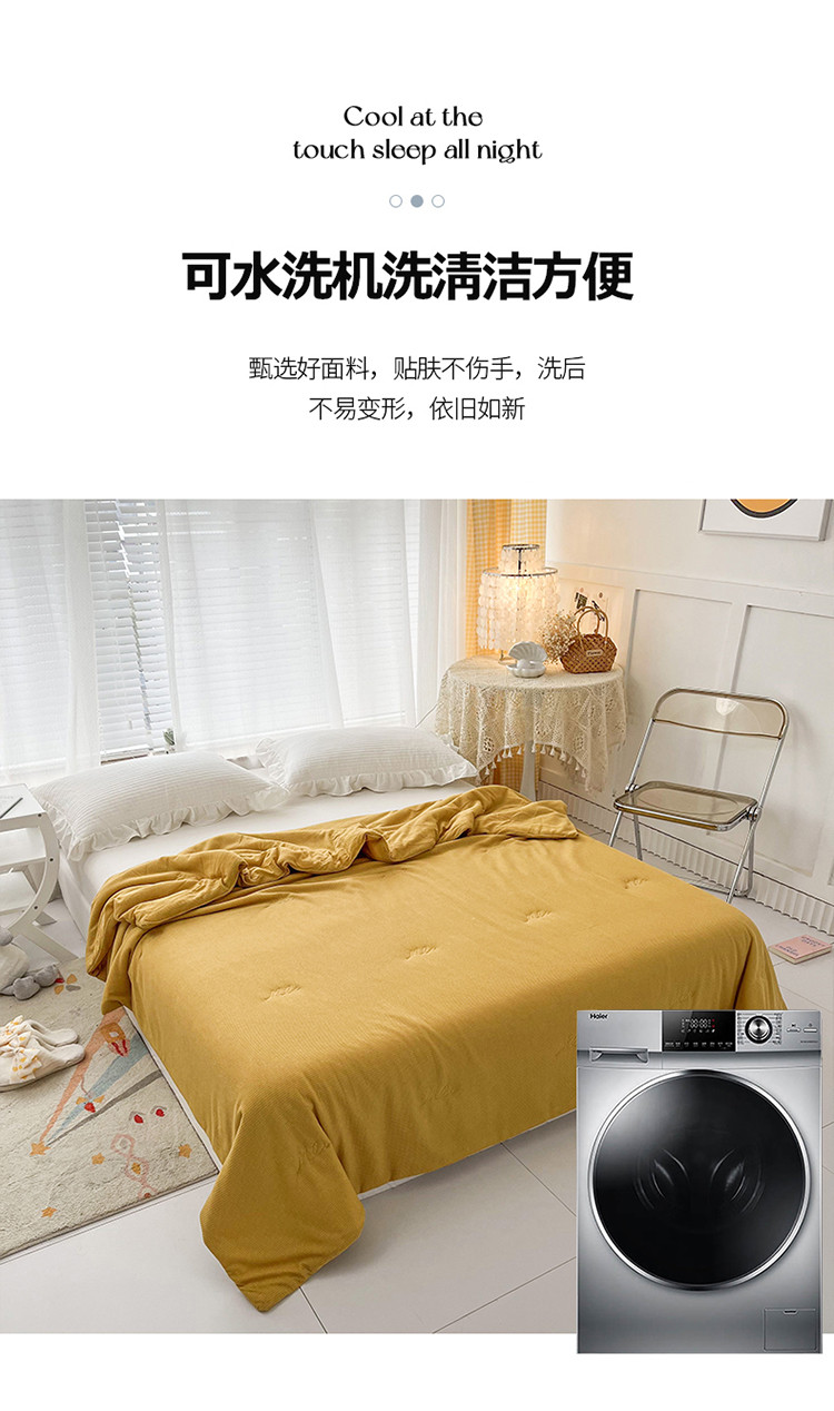 (总)珺柔 2023新款凉感丝纯色夏被--嵌绳系列,金黄,深蓝,水绿,天蓝