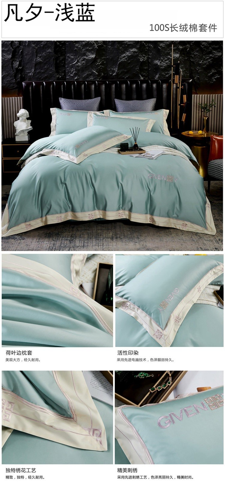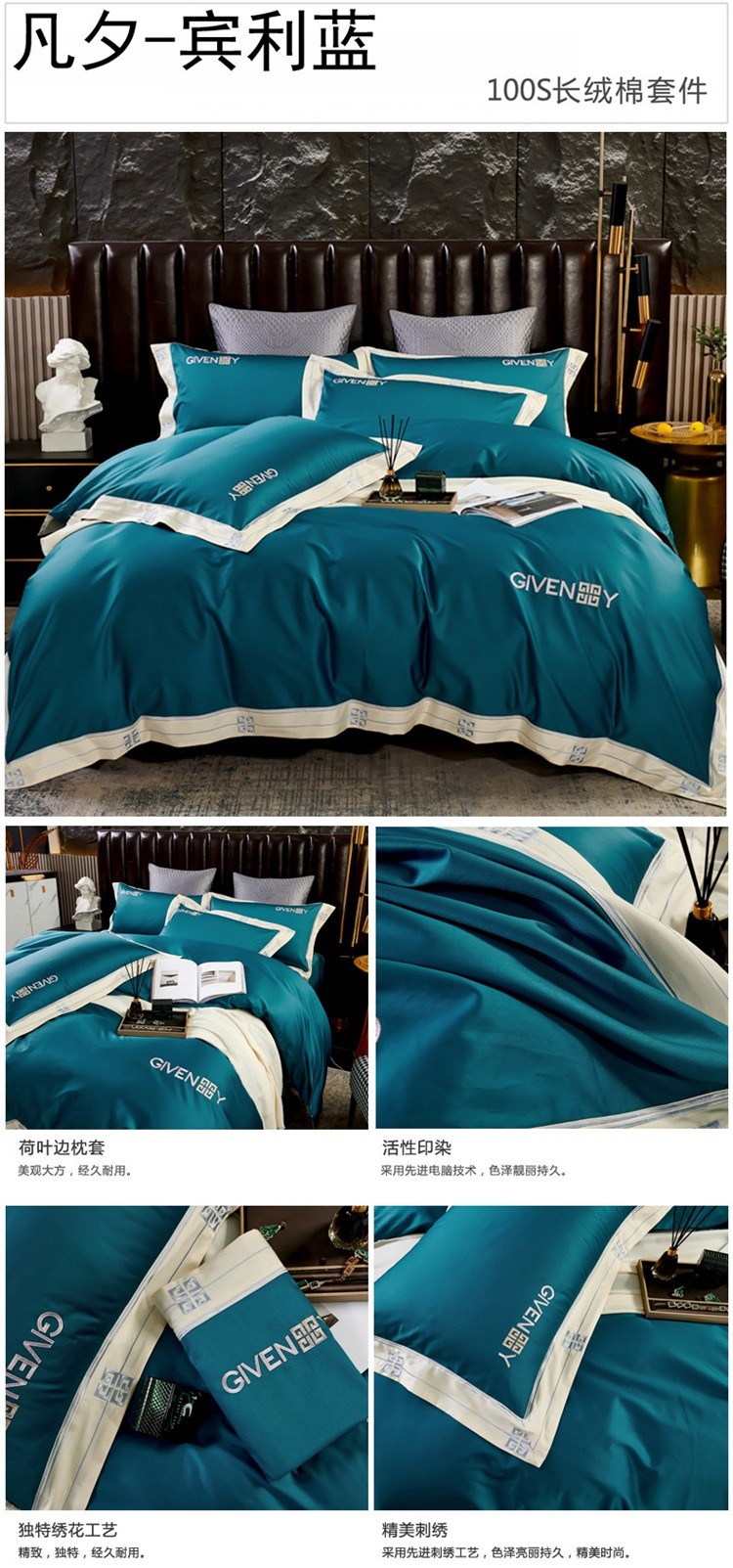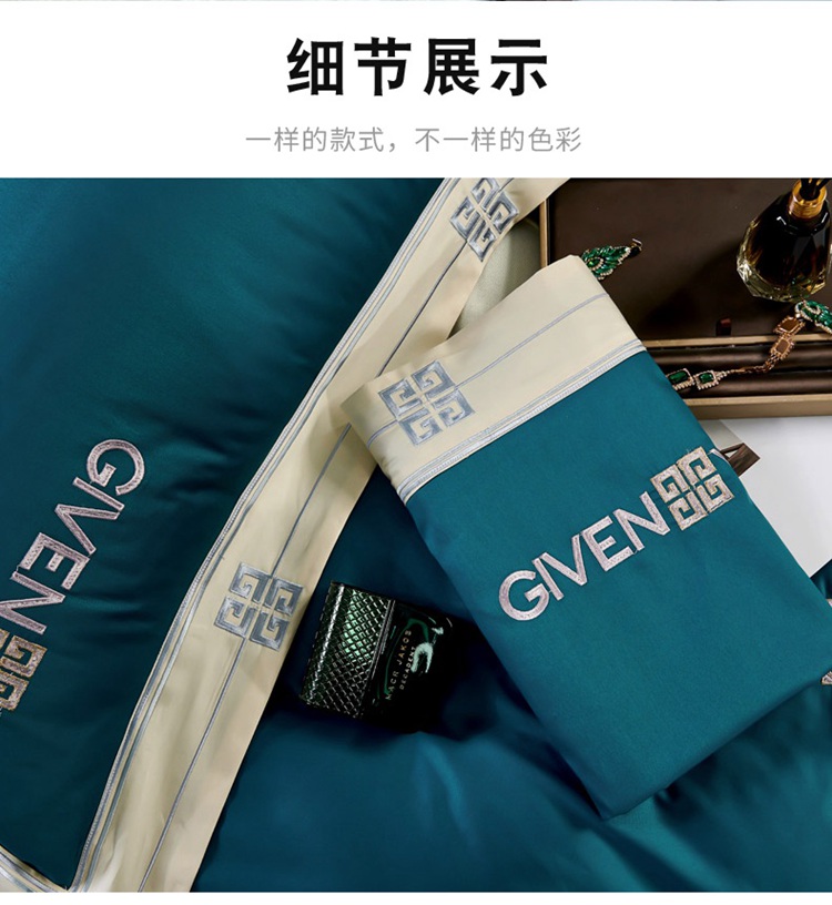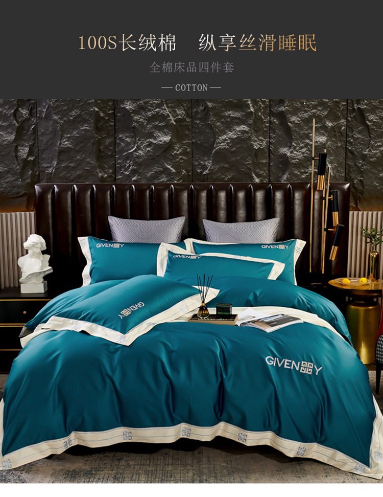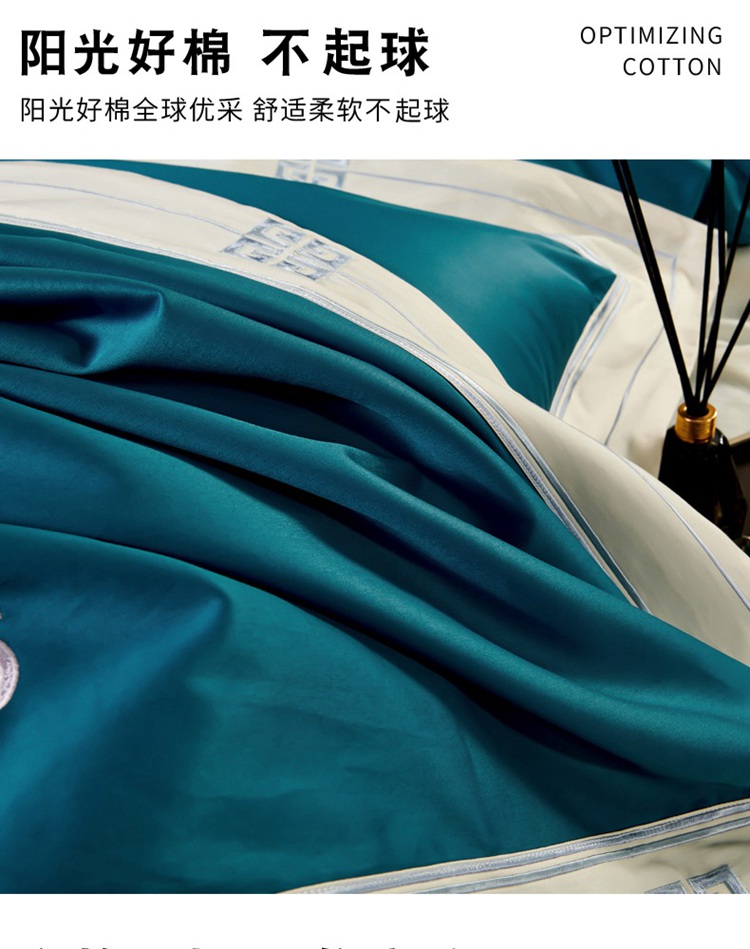 (总)2023新款纯棉50支双股贡缎长绒棉刺绣四件套 全棉绣花
