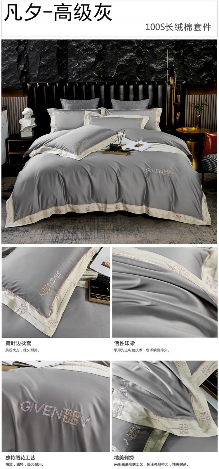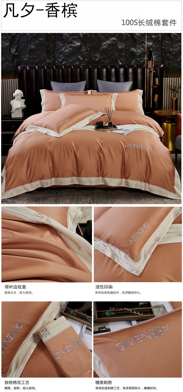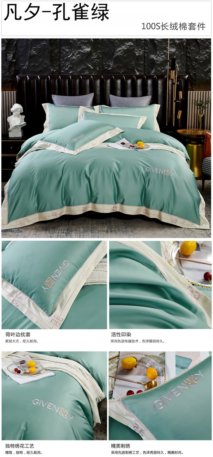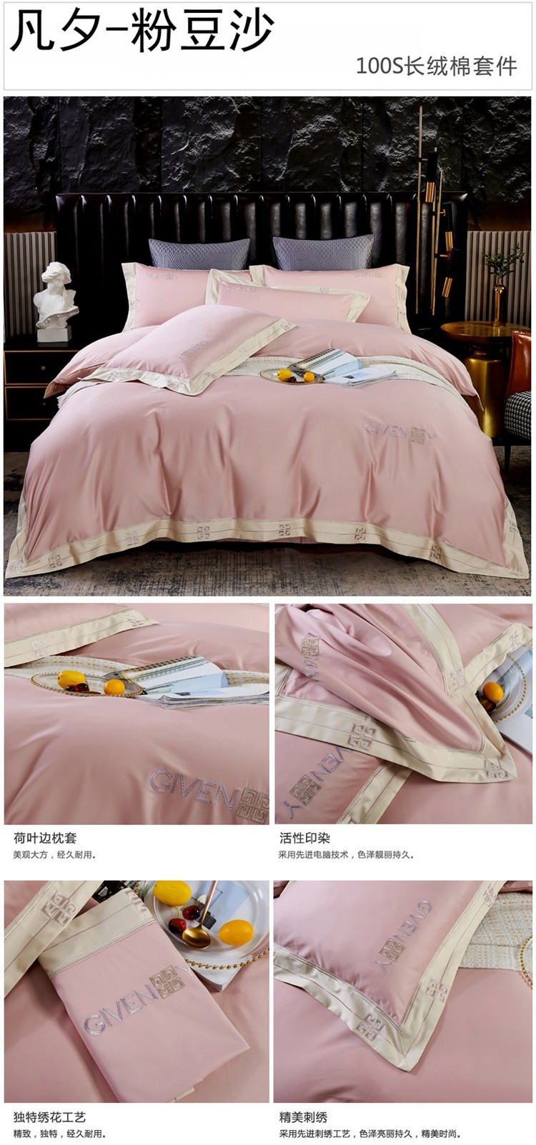 (总)2023新款纯棉50支双股贡缎长绒棉刺绣四件套 全棉绣花