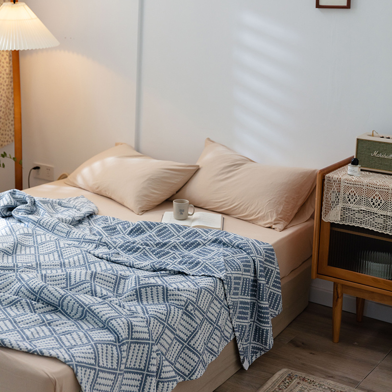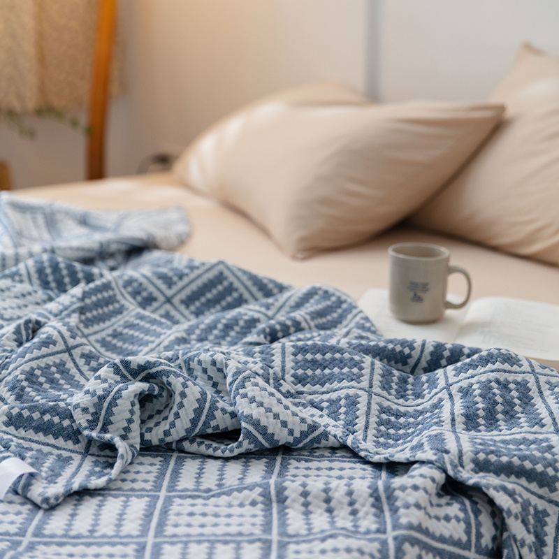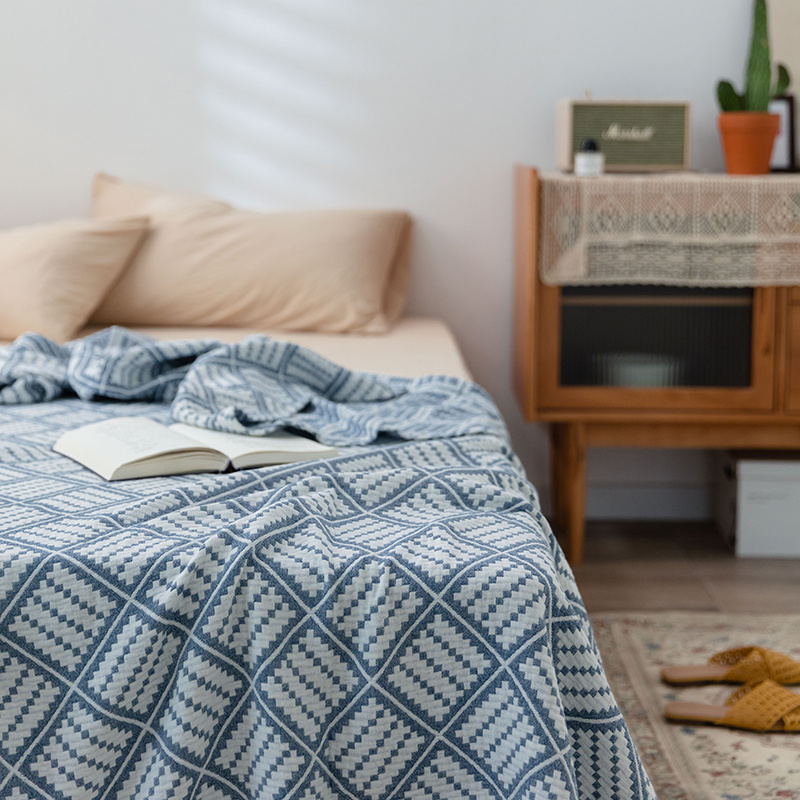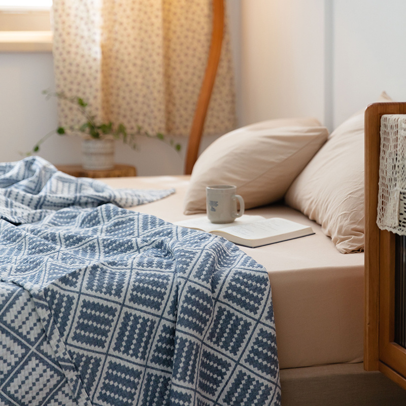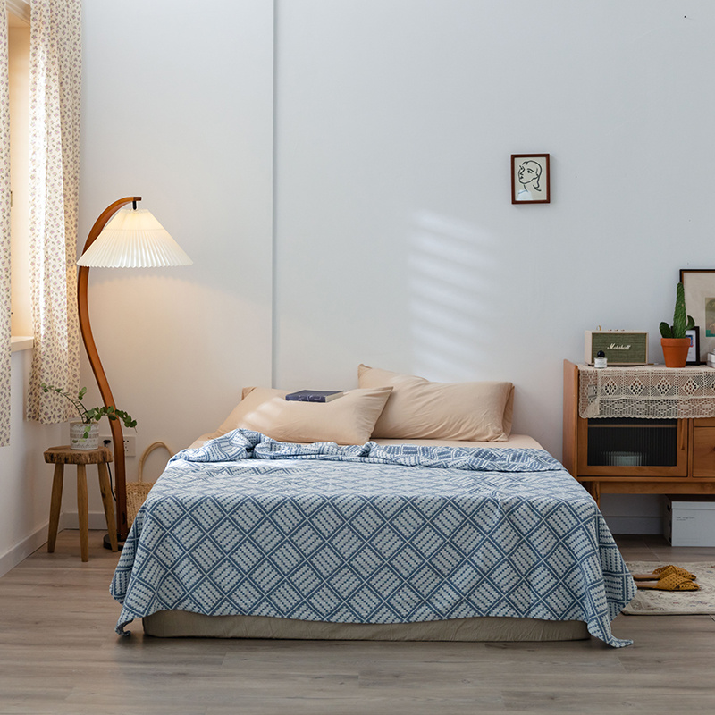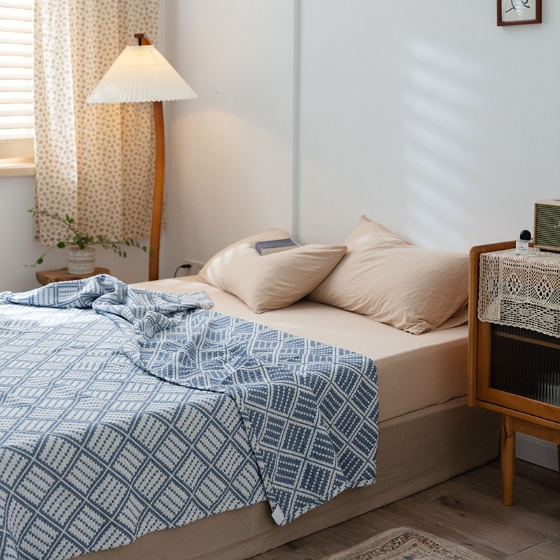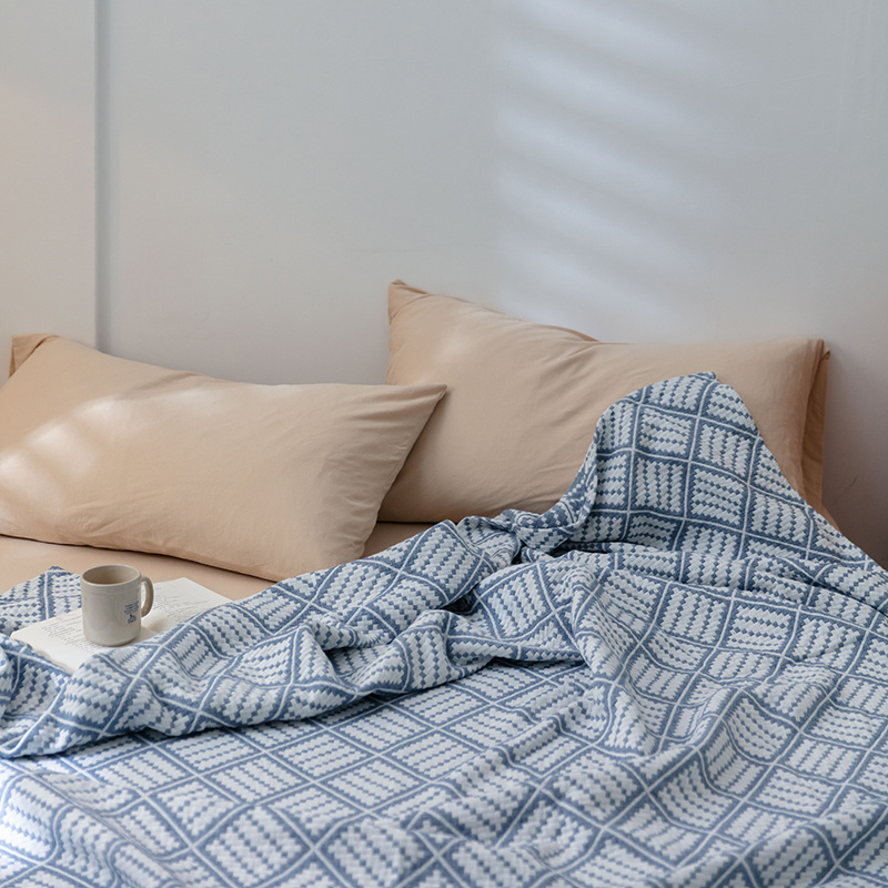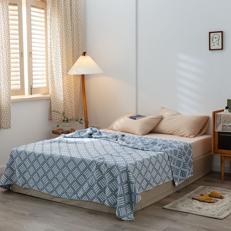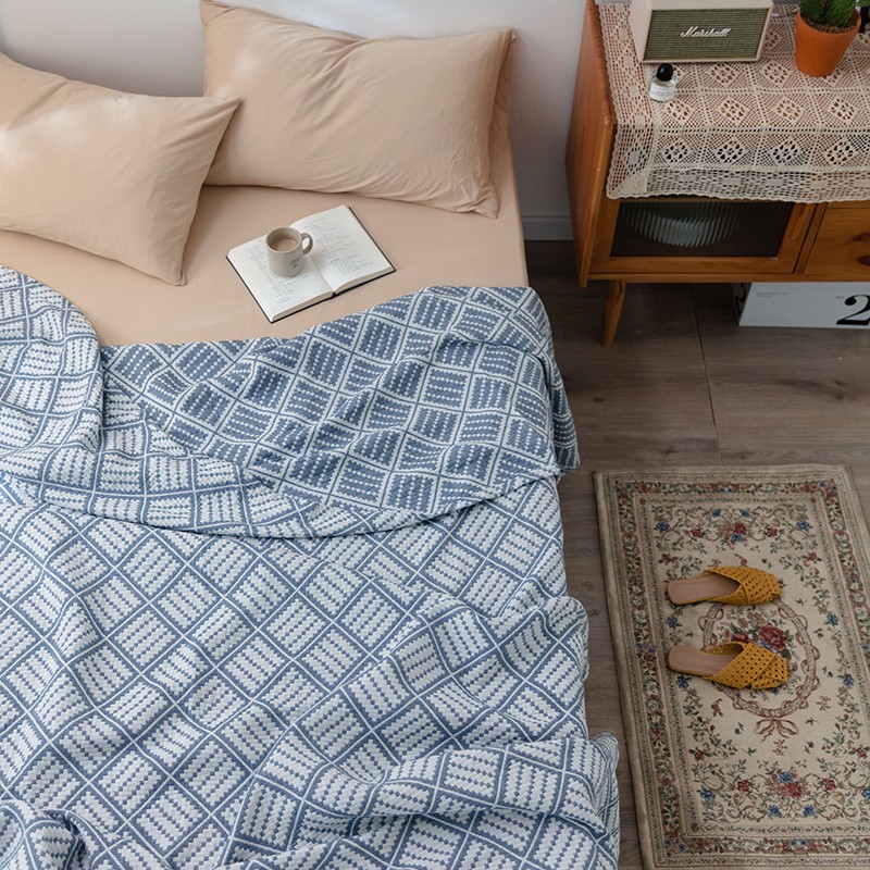 雯雨 2022新款无印风纱布毛巾被夏被直播方格圆点兰