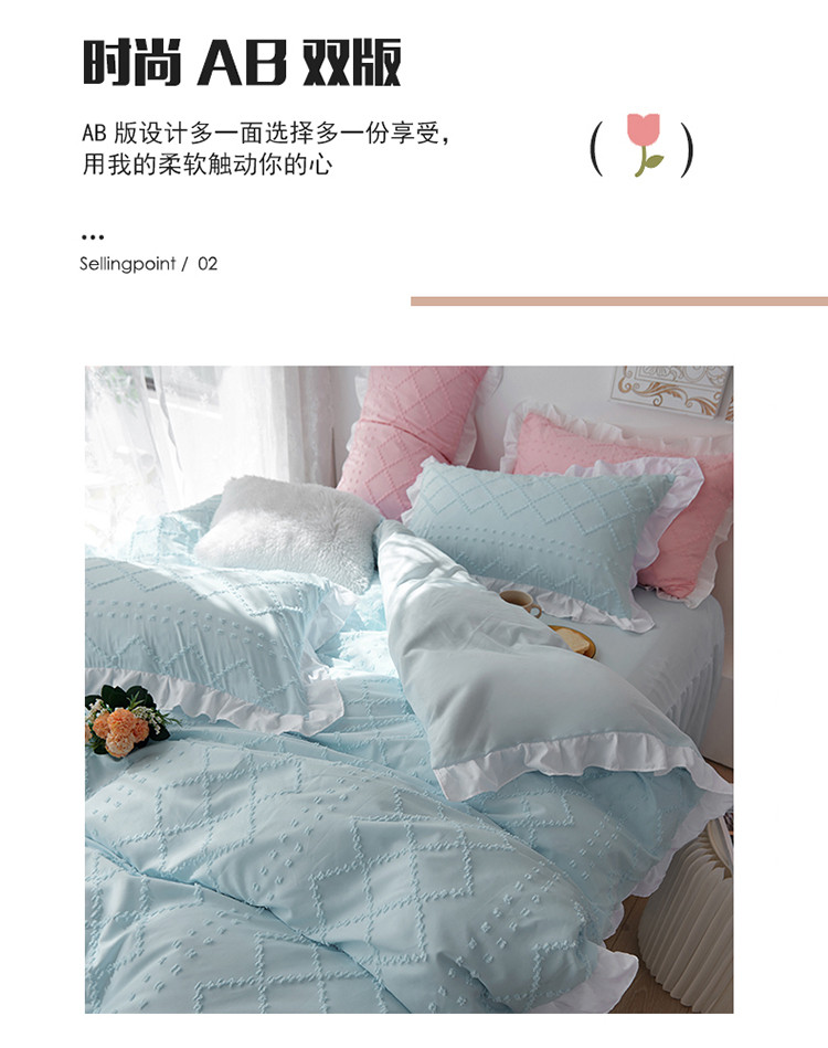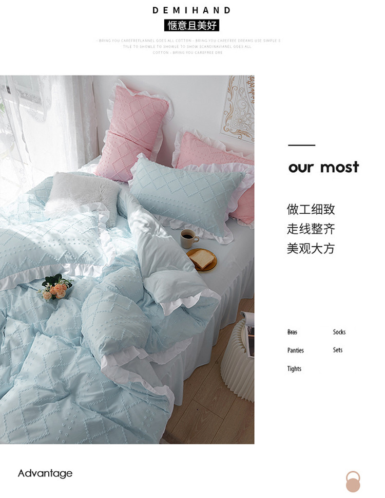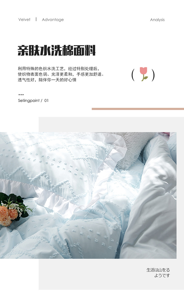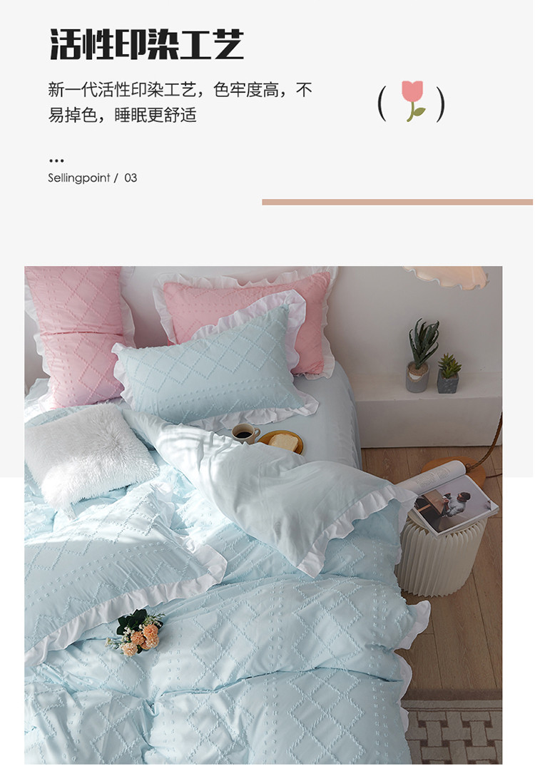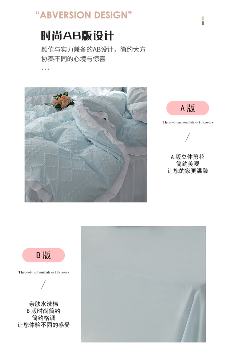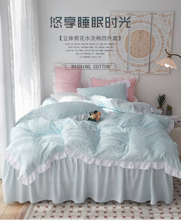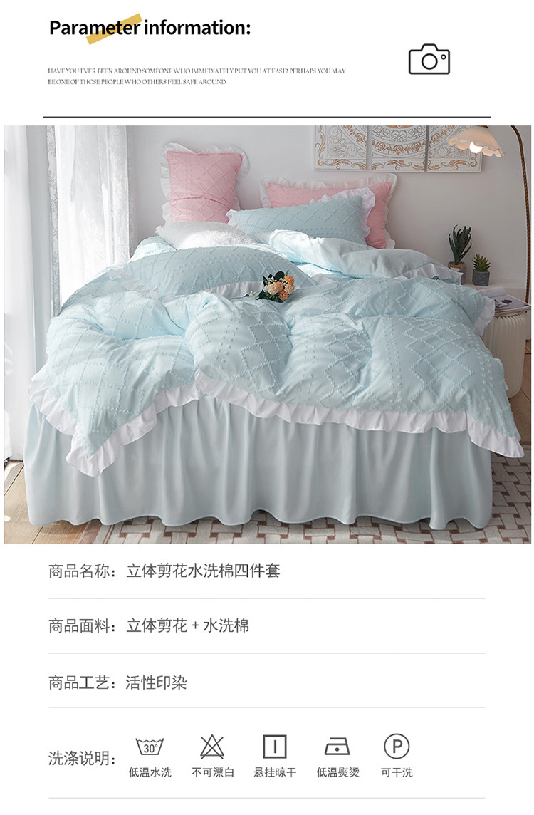 当前位置: 91家纺网 > 商品网购 > 床品套件 > 四件套 > 磨毛活性四件套 > 2023春夏爆款韩版立体剪花ins风工艺款四件套 温柔蓝
