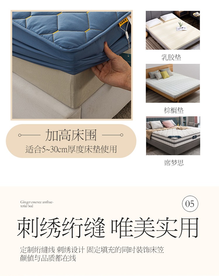 商品名称:(总) 纤雅床笠 2024新款A类半包生姜暖绒抗菌夹棉床笠