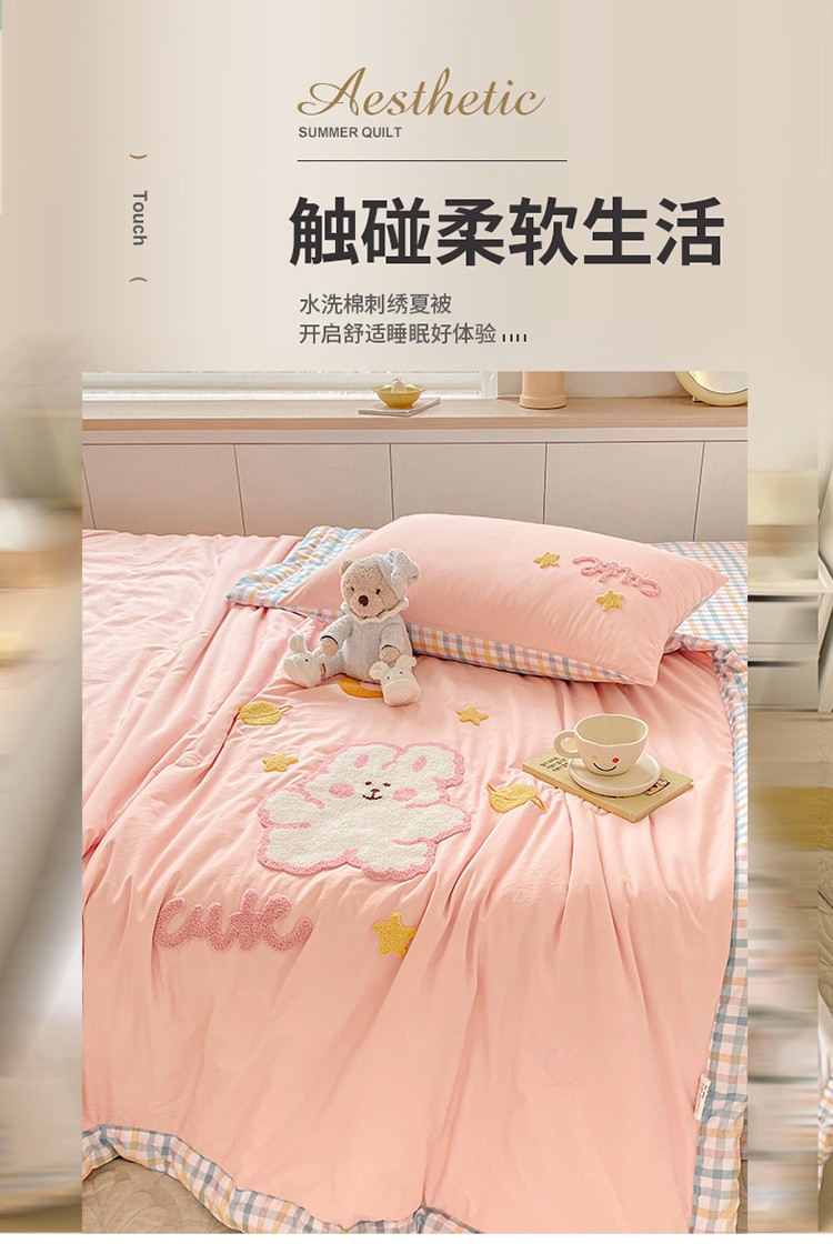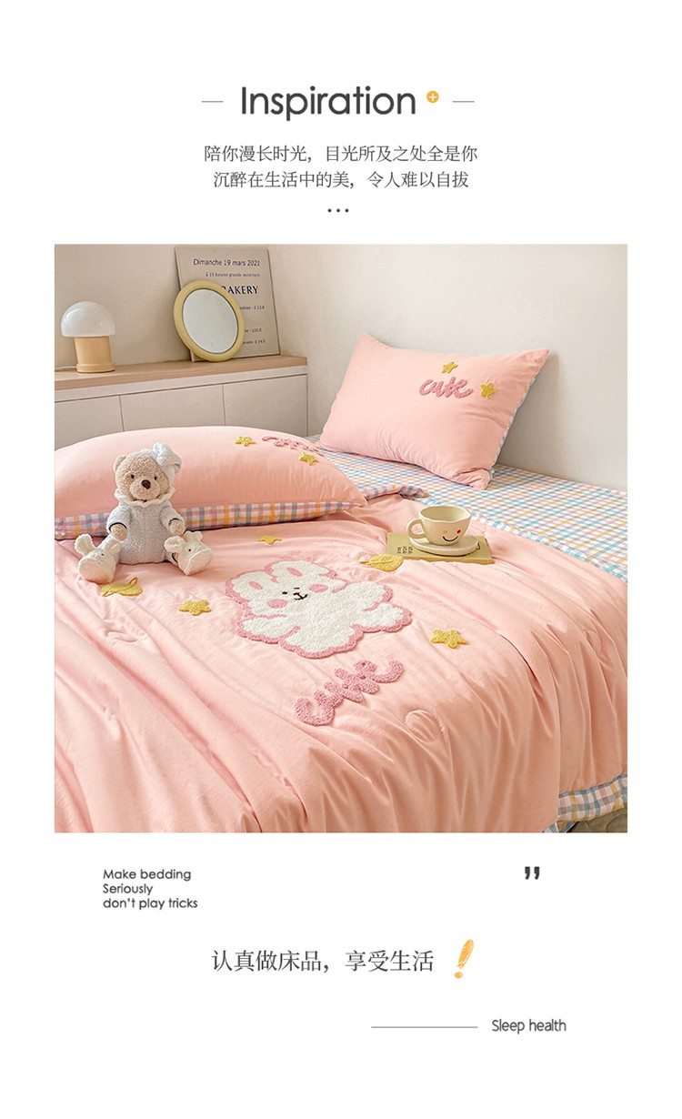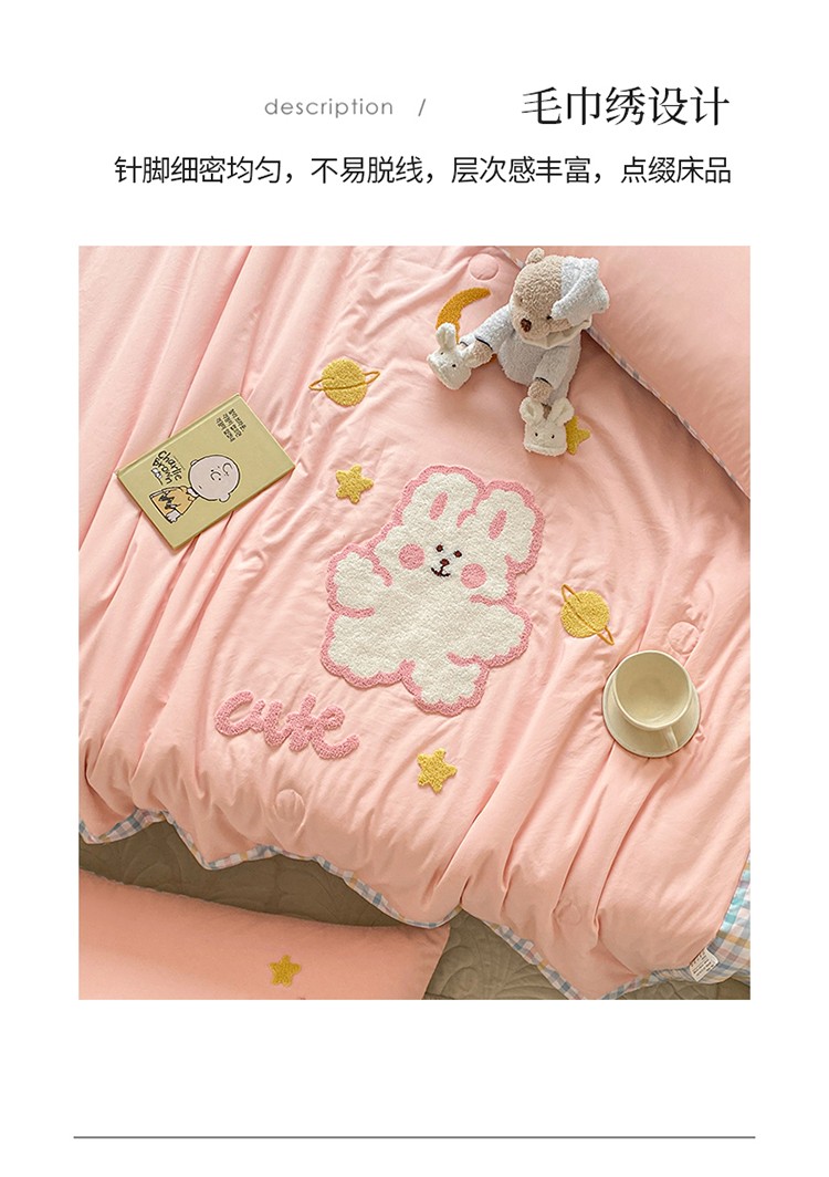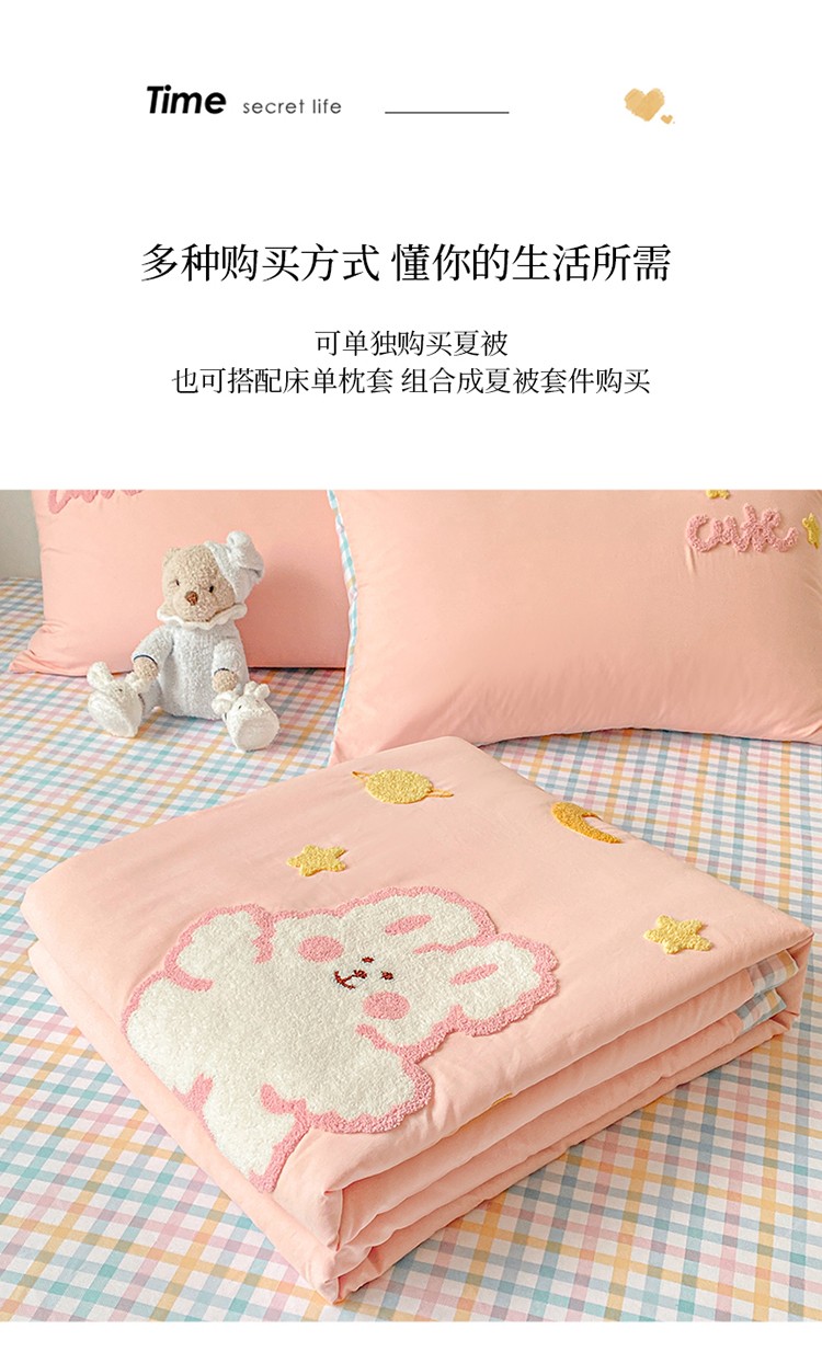 当前位置: 91家纺网 > 商品网购 > 床品套件 > 四件套 > 夏被四件套 > N先生 2022新款卡通水洗棉夏被四件套 萌萌兔粉