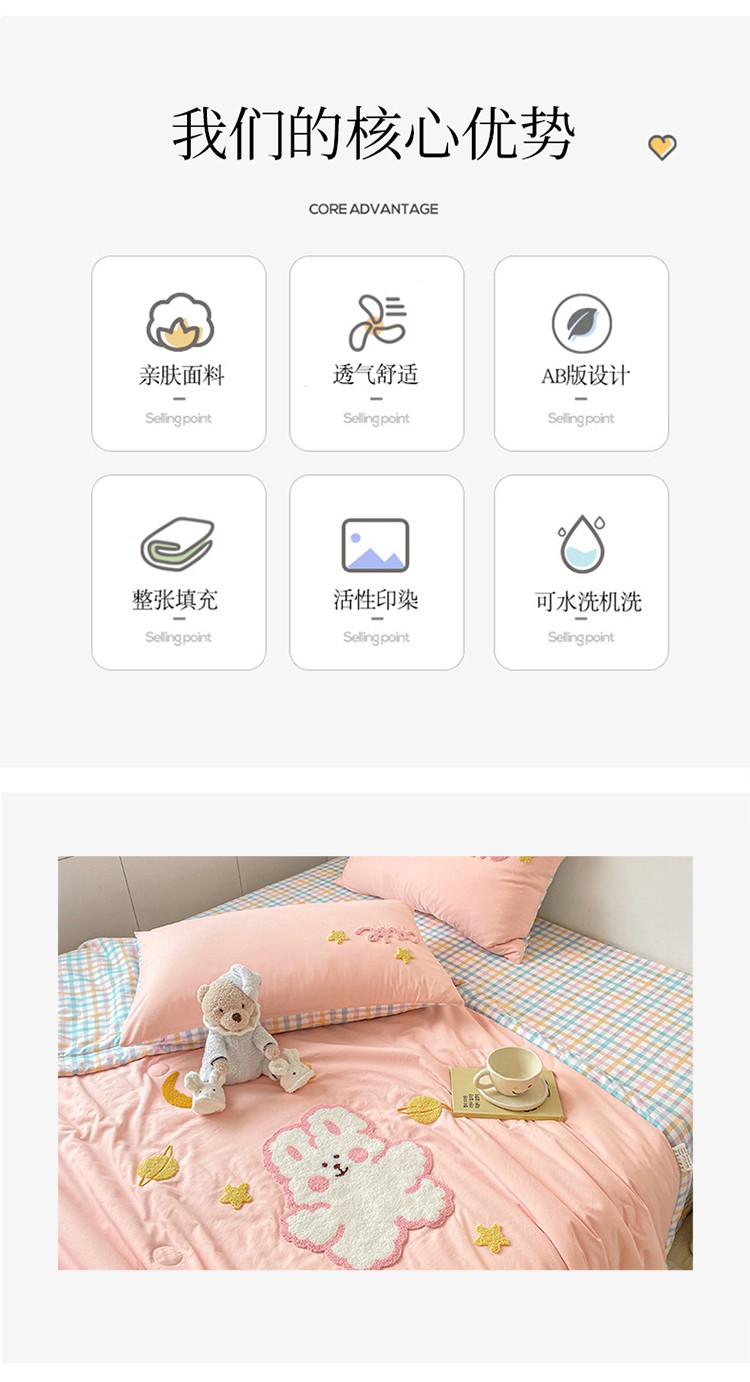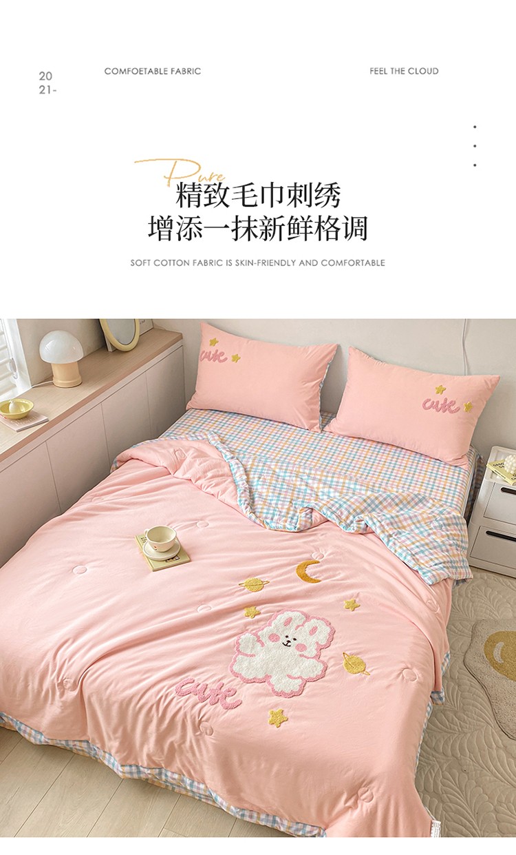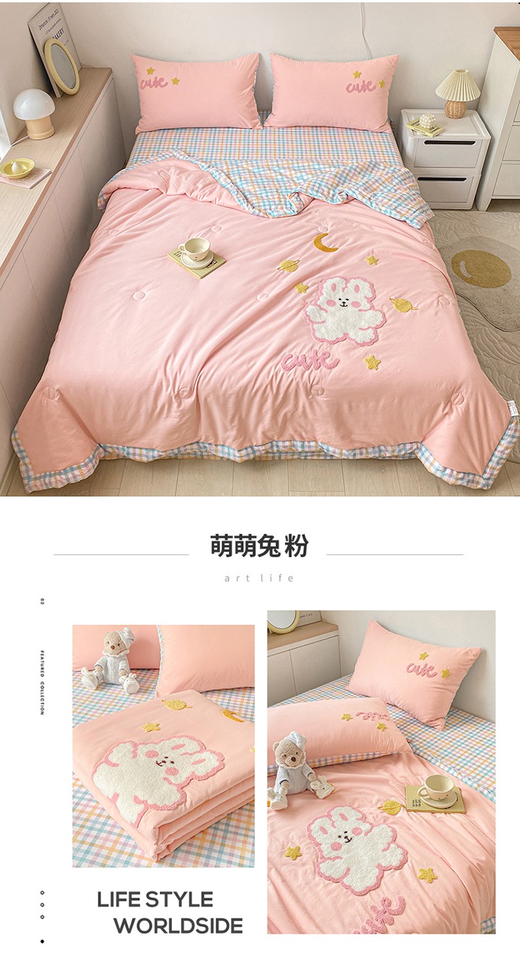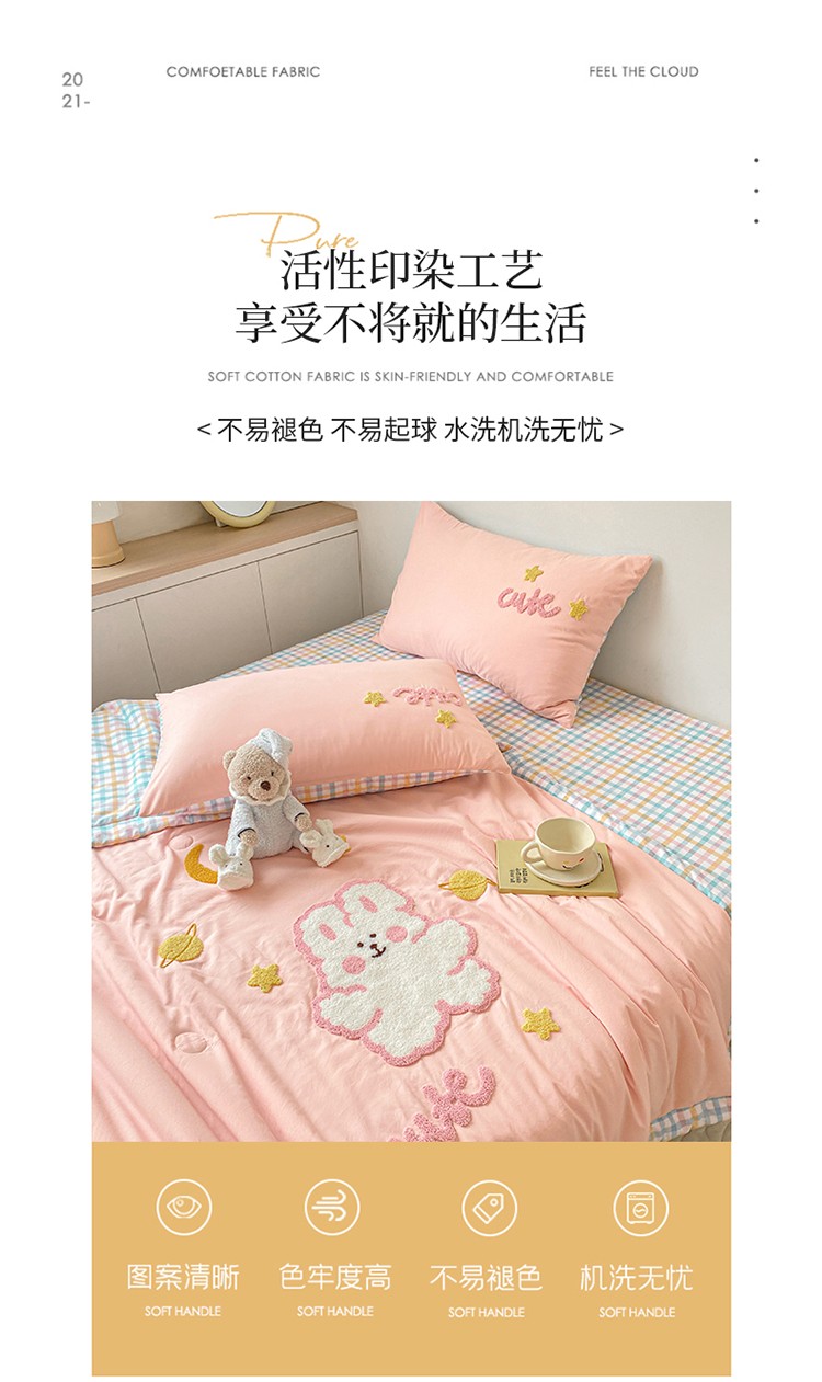当前位置: 91家纺网 > 商品网购 > 床品套件 > 四件套 > 夏被四件套 > N先生 2022新款卡通水洗棉夏被四件套 萌萌兔粉