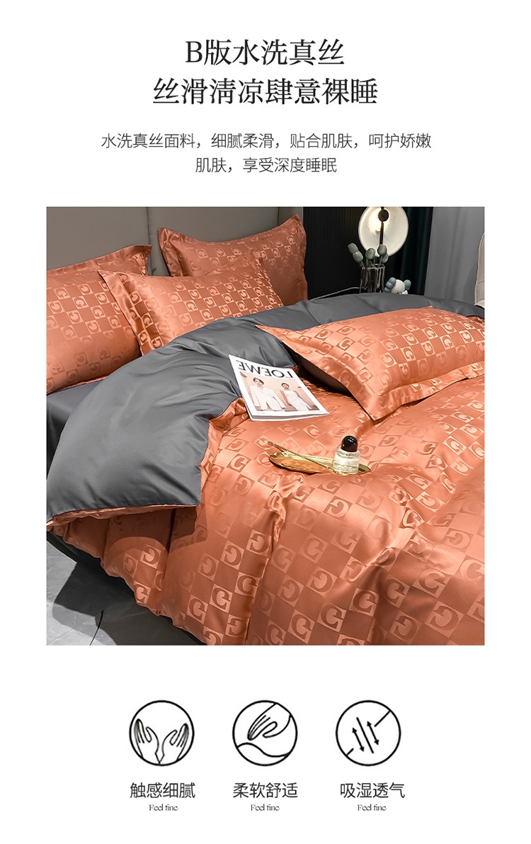 (总)遇见家居2022新款水洗磨毛亲肤棉贡缎提花四件套-柏林