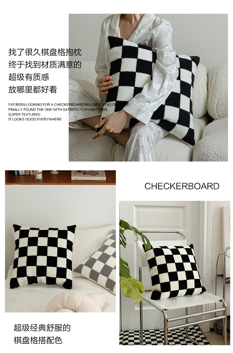 商品名称:美茉 2022新款棋盘格毛巾绣抱枕 粉色