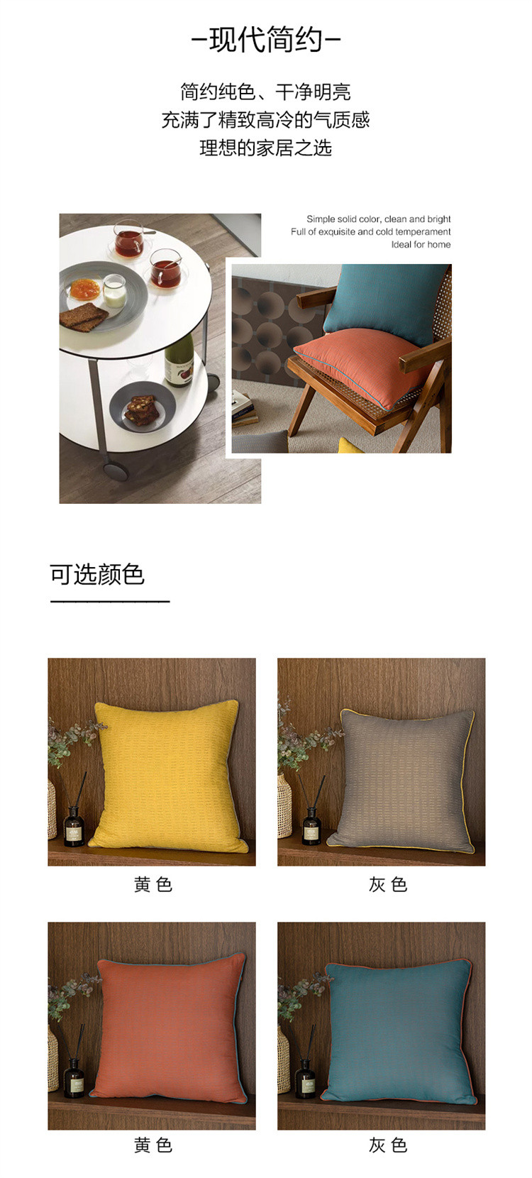 (总)美茉家居 2025新款加厚高端沙发布雪尼尔滚边方枕抱枕,缎面红,孔雀绿,南瓜橘,烟雨灰,珍珠白