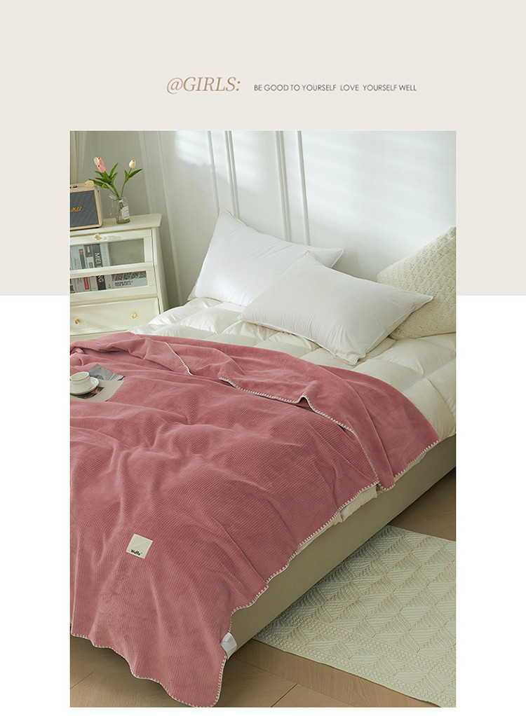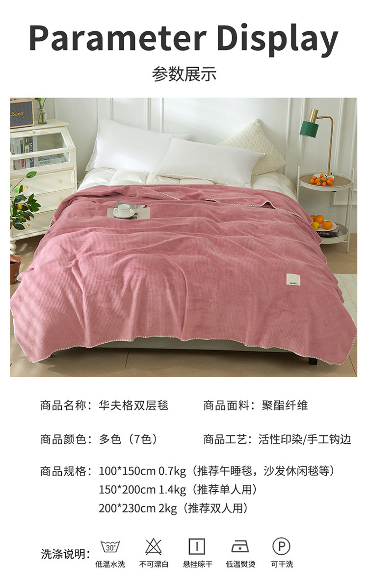 (总) 馨米莱 2024新款华夫格毛毯牛奶绒夏被毯空调毯,豆绿色,焦糖色,裸粉色,米灰色,明黄色,雾蓝色,嫣红色,白色