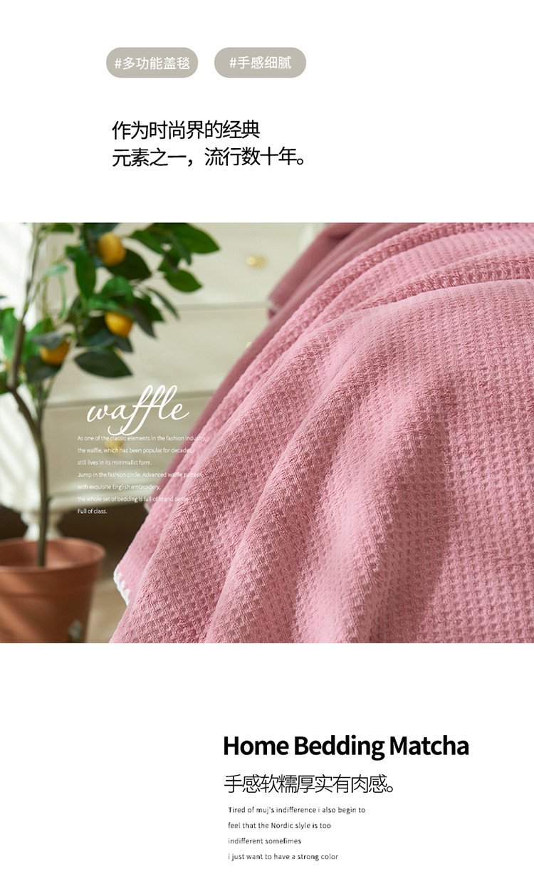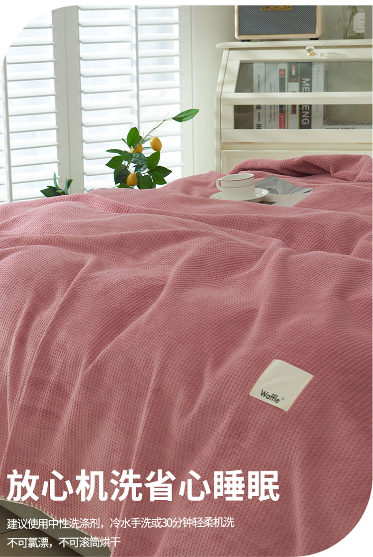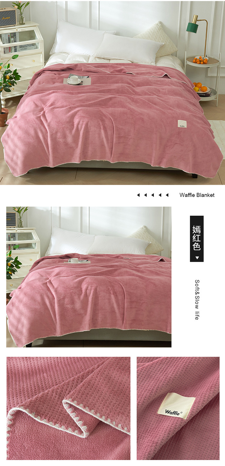 商品名称:馨米莱 2024新款华夫格毛毯牛奶绒夏被毯空调毯 嫣红色