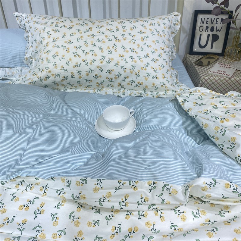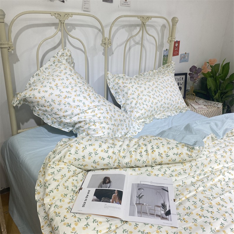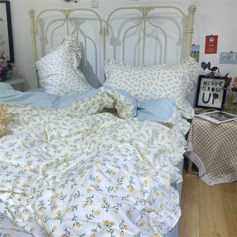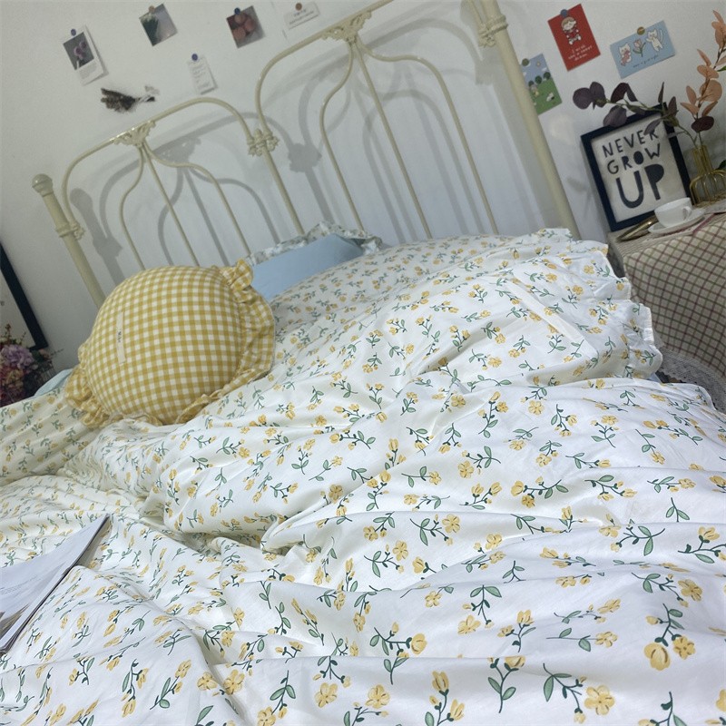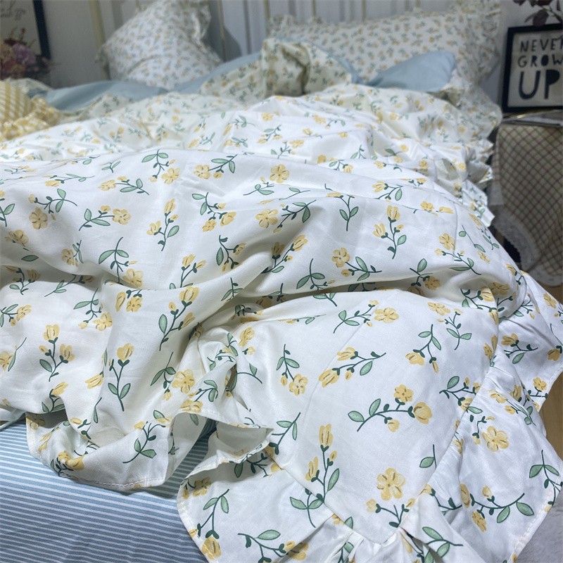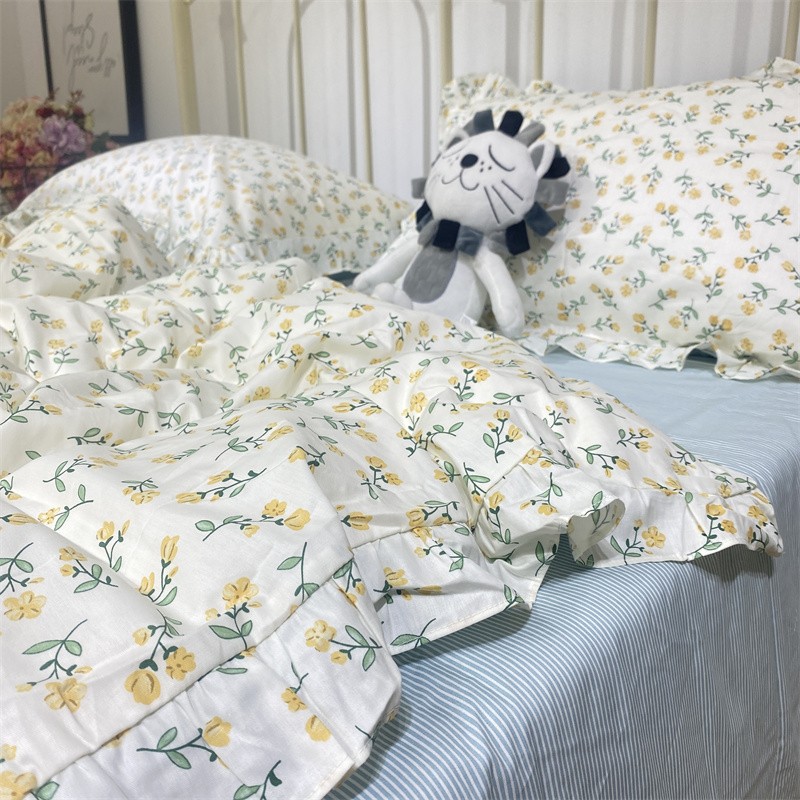 棉生活 2022新款韩系花边碎花四件套 花季物语-黄
