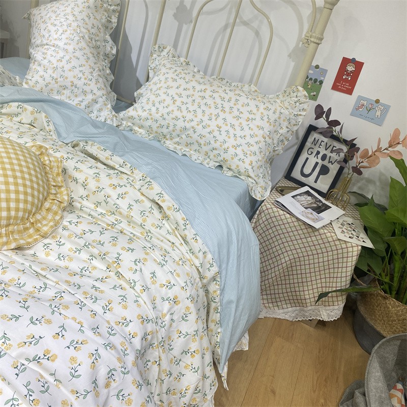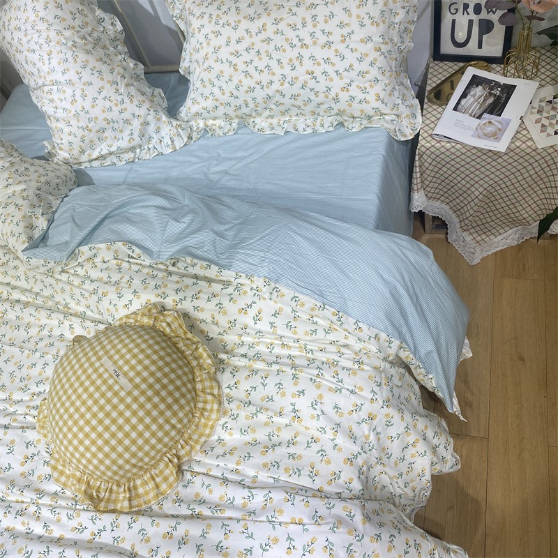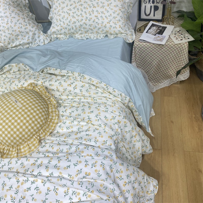 商品名称:棉生活 2022新款韩系花边碎花四件套 花季物语-黄