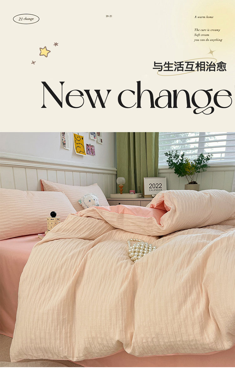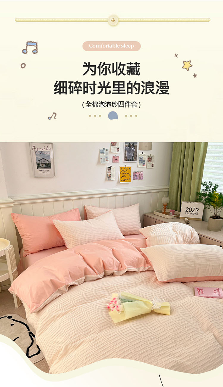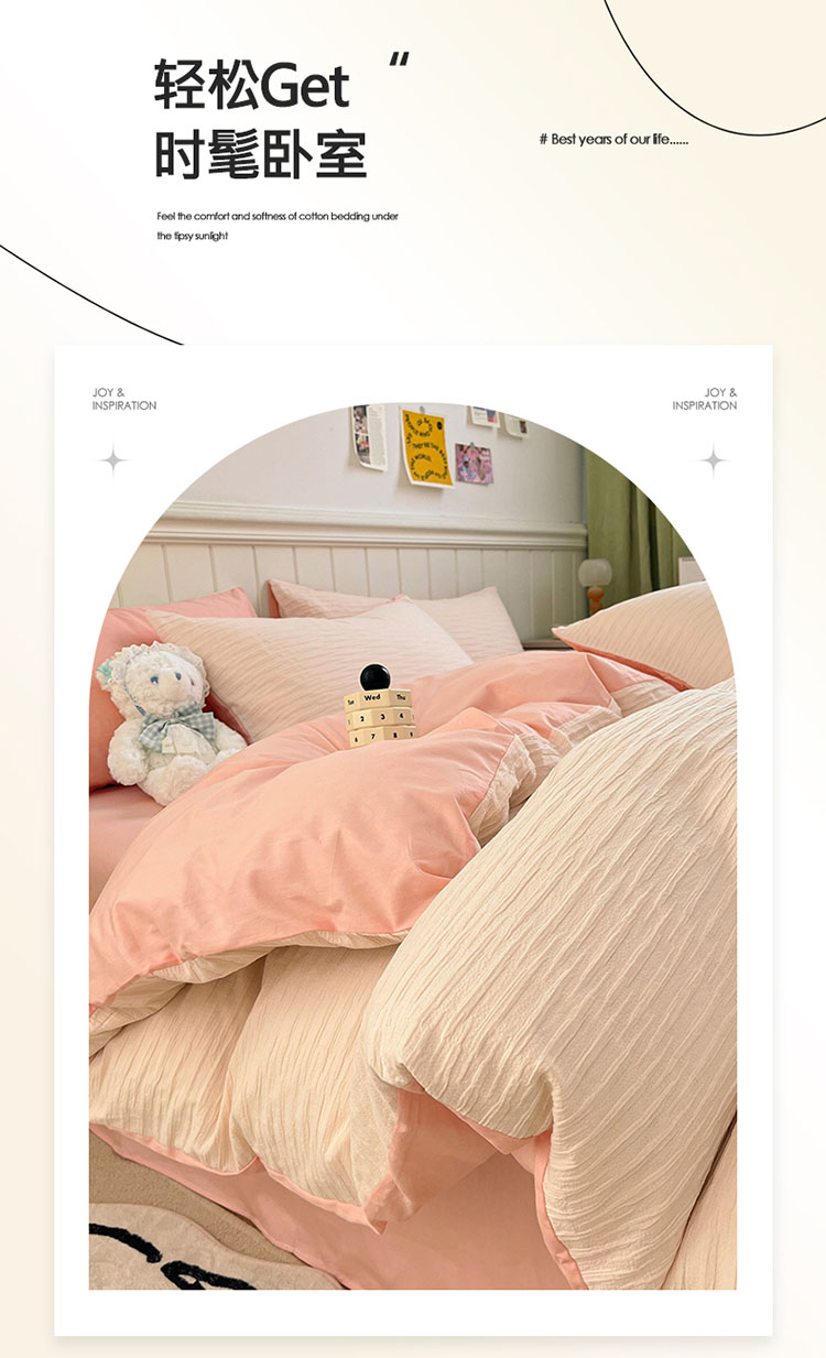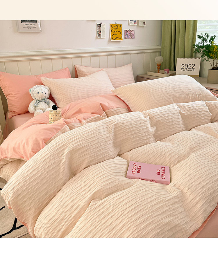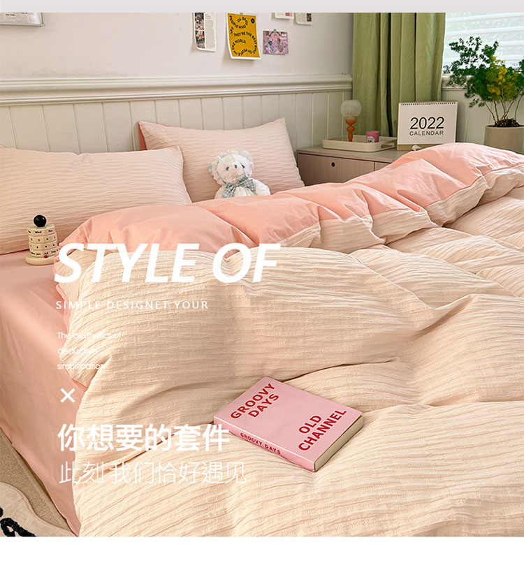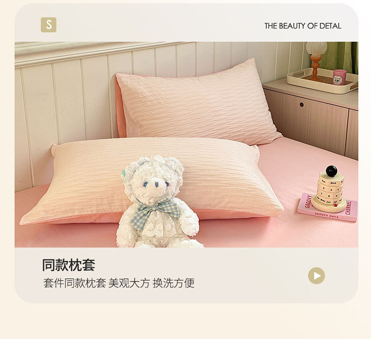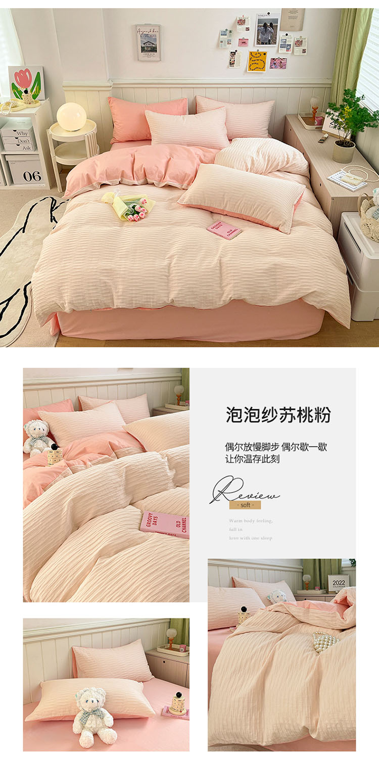 商品名称:雅居纺 2022新款全棉13372泡泡纱四件套 泡泡纱苏桃粉