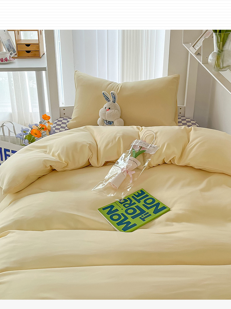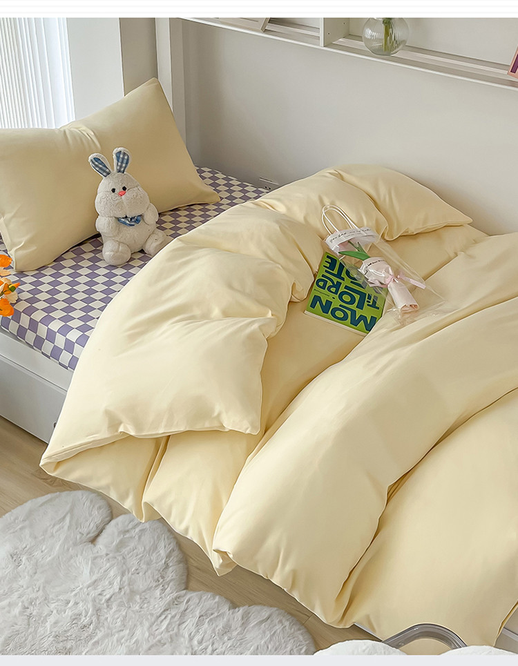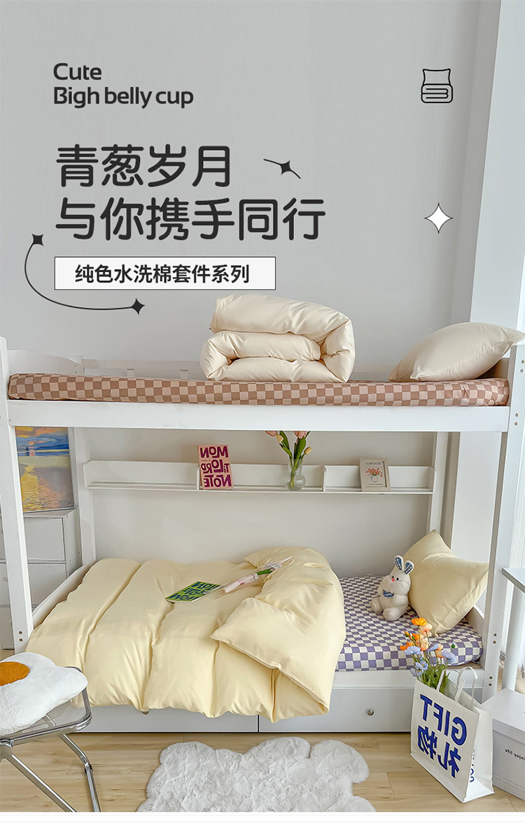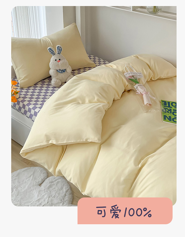 眠帛 2022新款水洗棉混搭学生床三件套 奶黄
