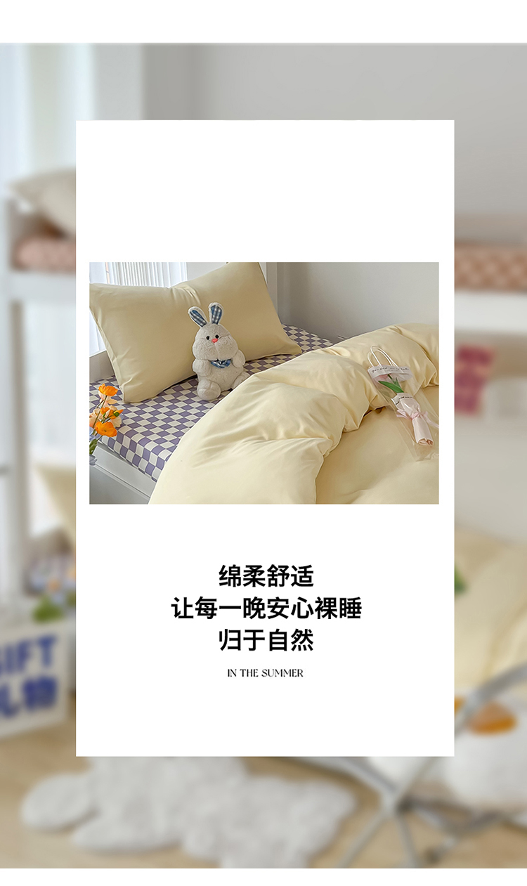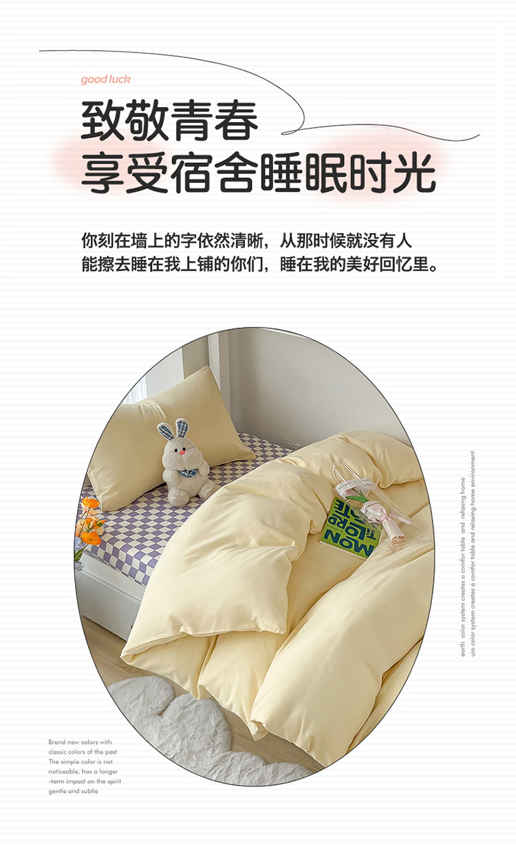 商品名称:眠帛 2022新款水洗棉混搭学生床三件套 奶黄