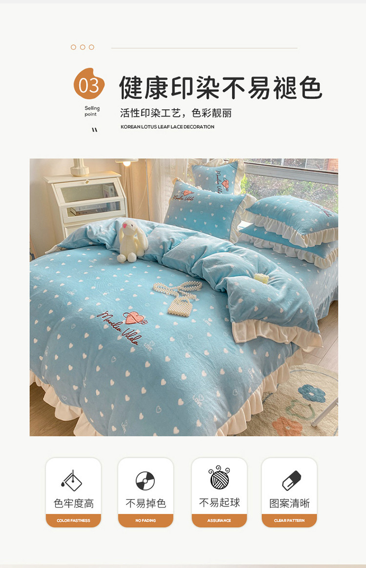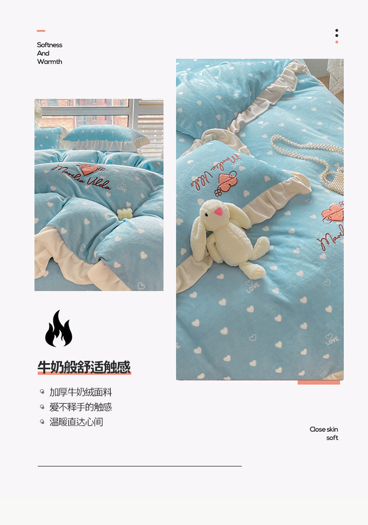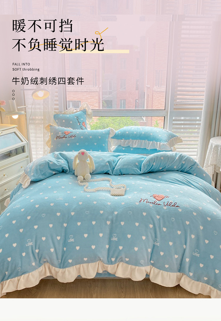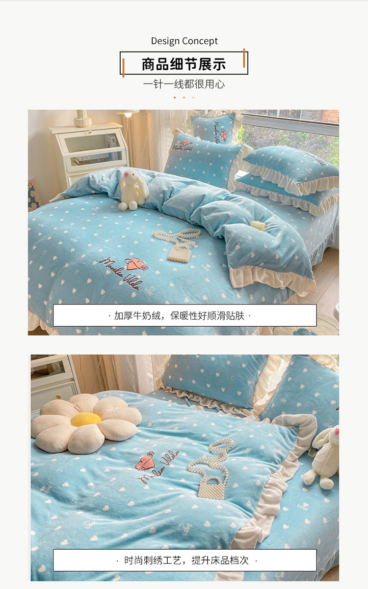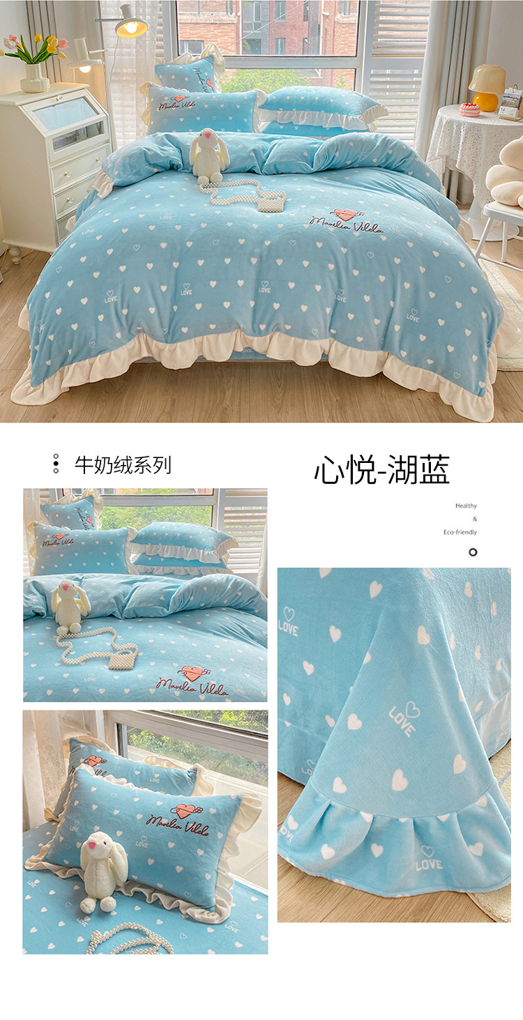 商品名称:其奥2022保暖加厚牛奶绒宝宝绒韩版公主风四件套心悦-湖蓝