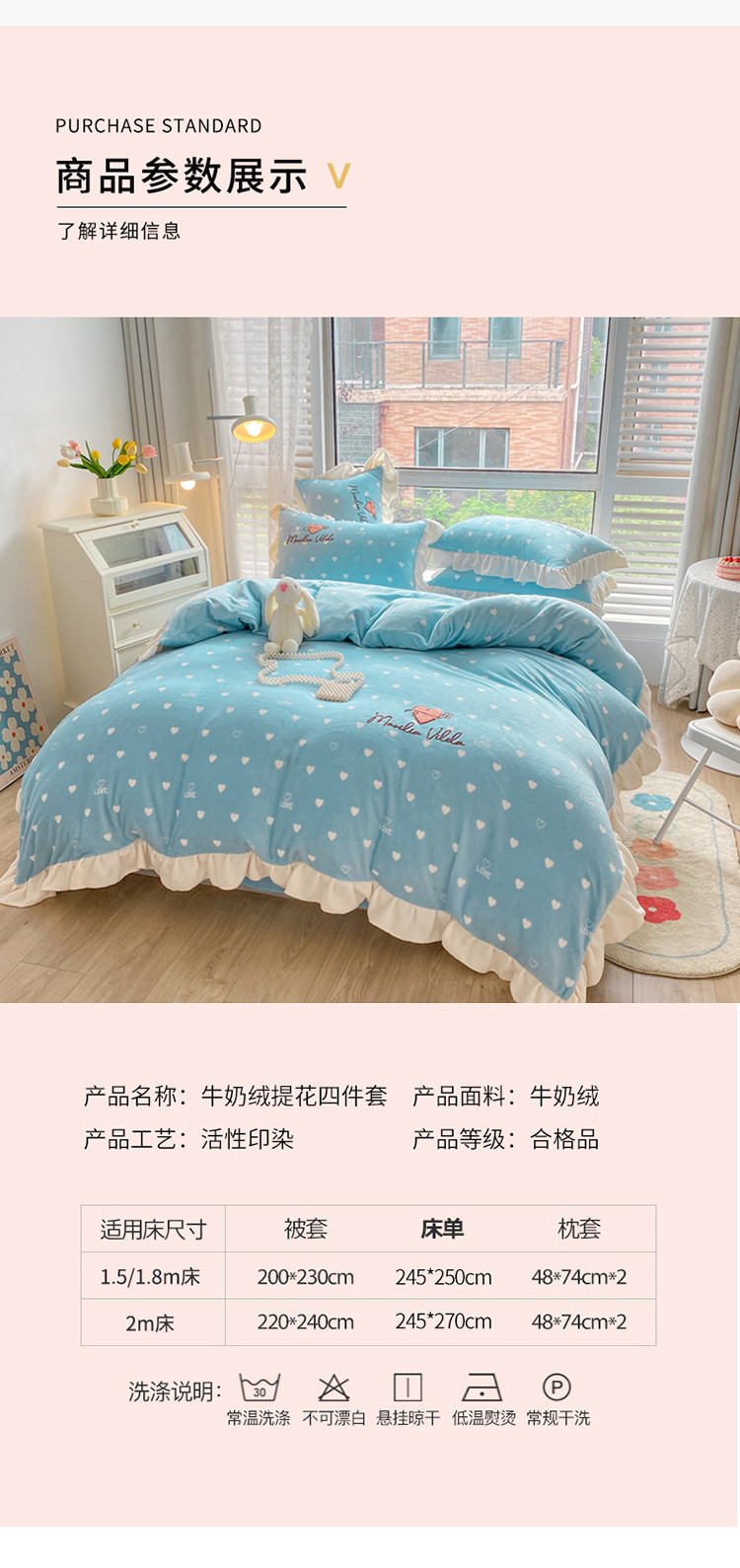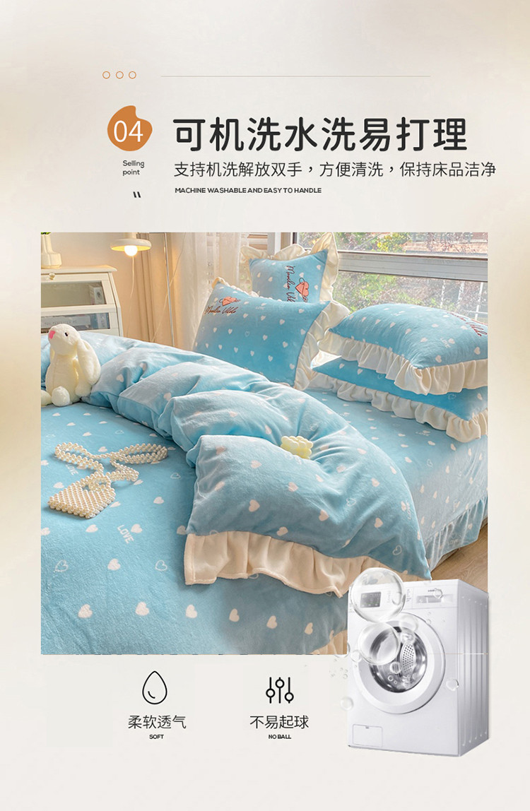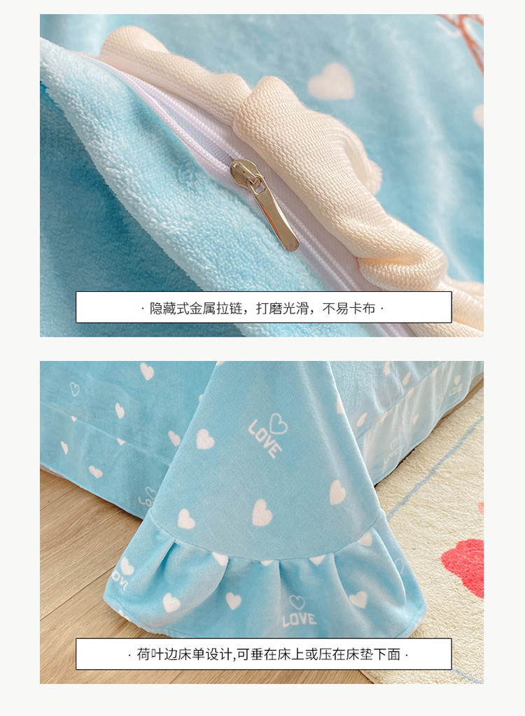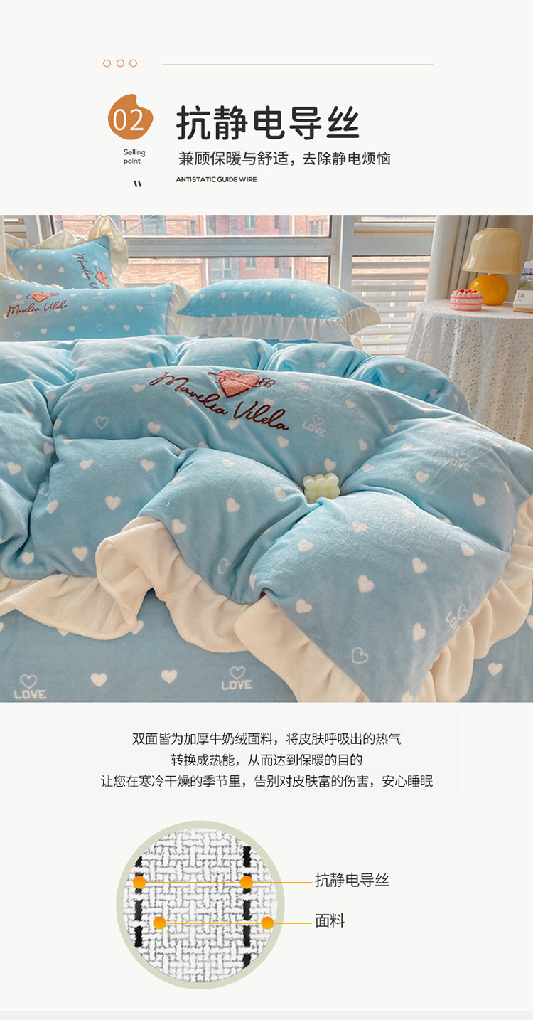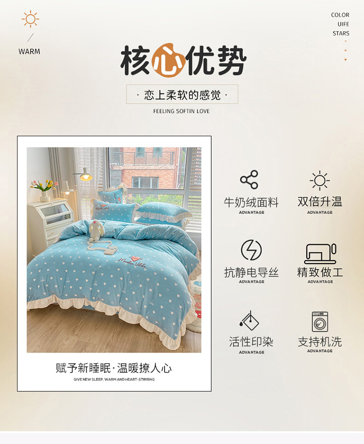 商品名称:其奥2022保暖加厚牛奶绒宝宝绒韩版公主风四件套心悦-湖蓝
