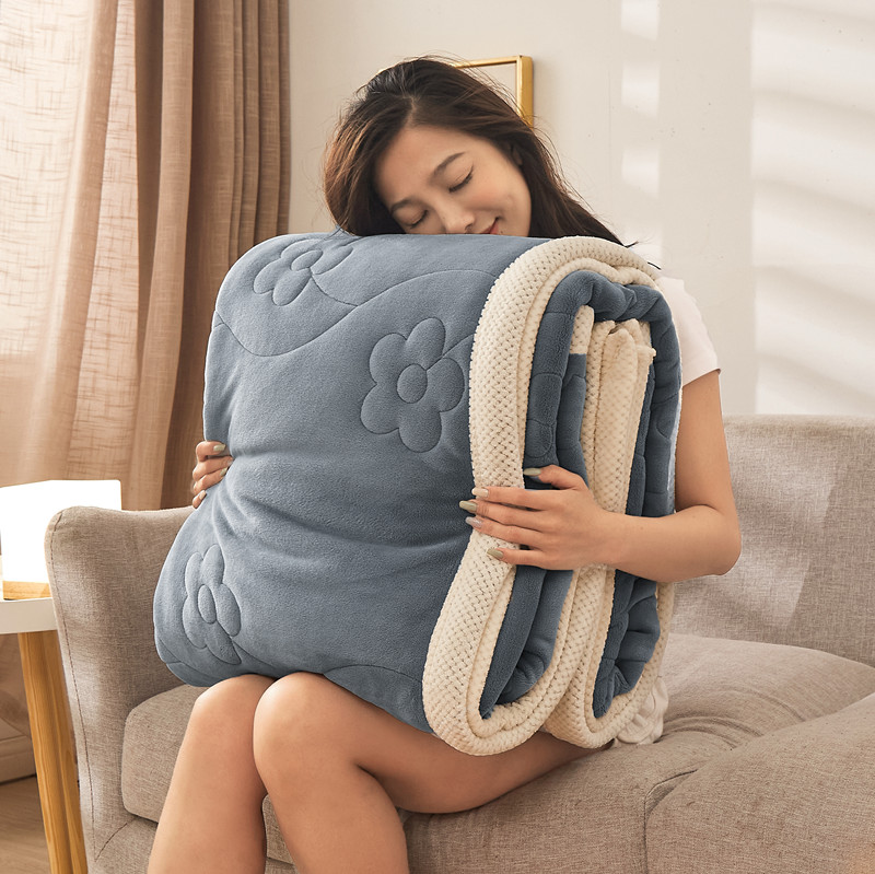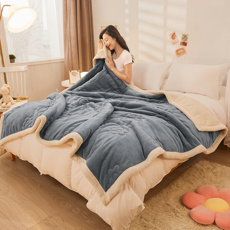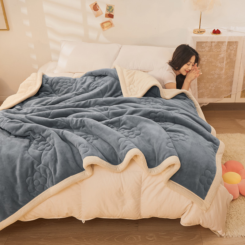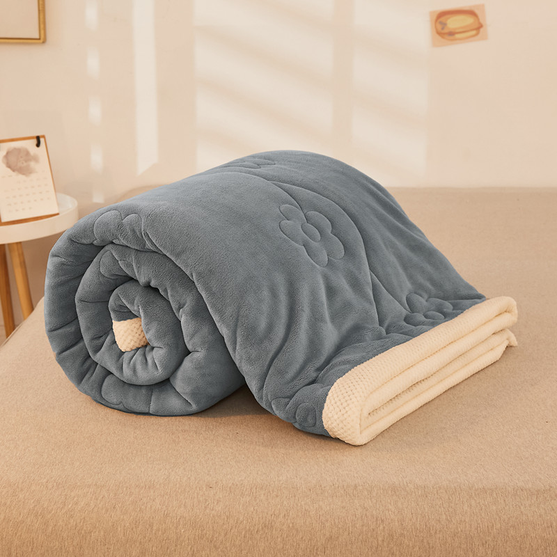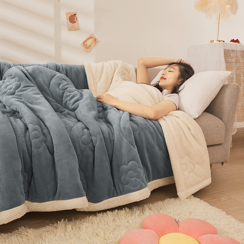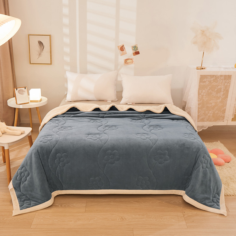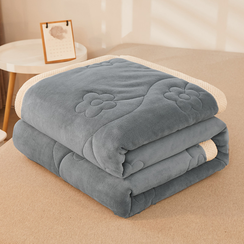 商品名称:苏拉 2023新款牛奶绒夹棉绗绣三层毯 灰色