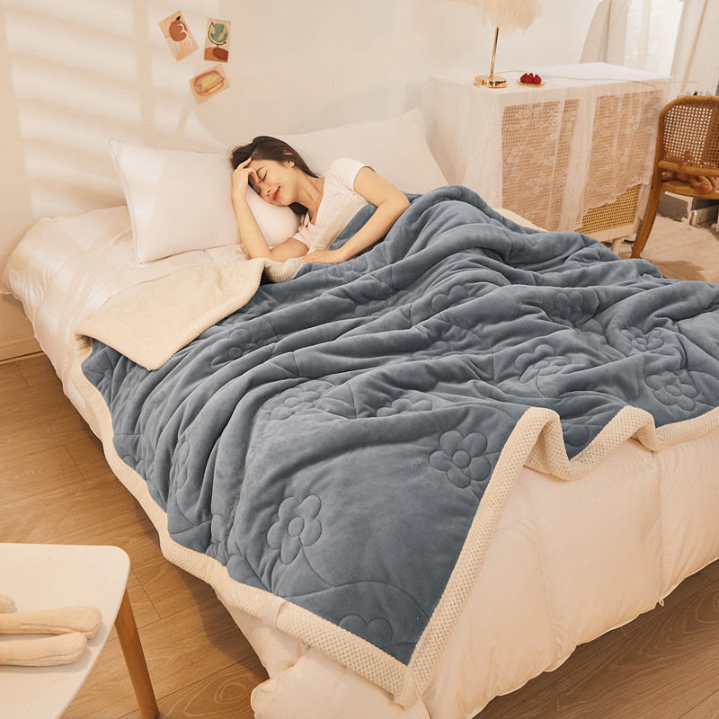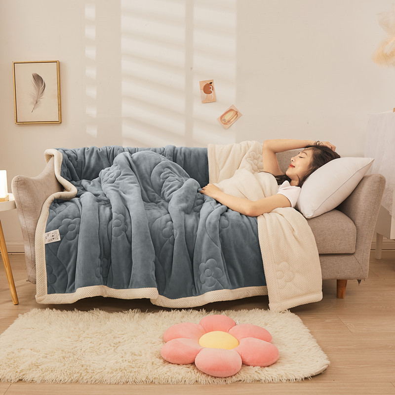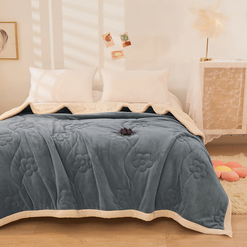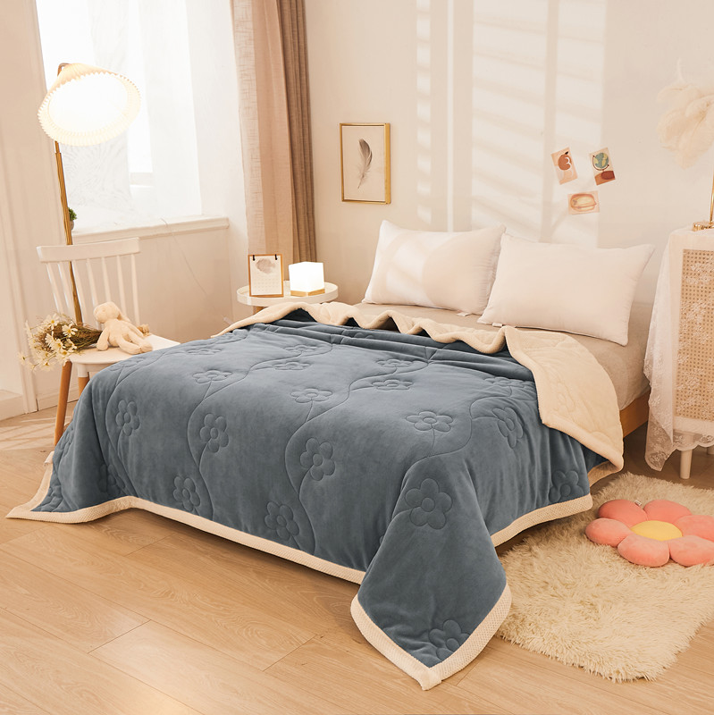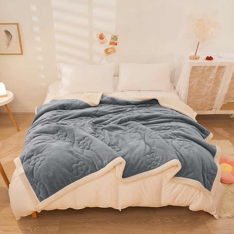 苏拉 2023新款牛奶绒夹棉绗绣三层毯 灰色
