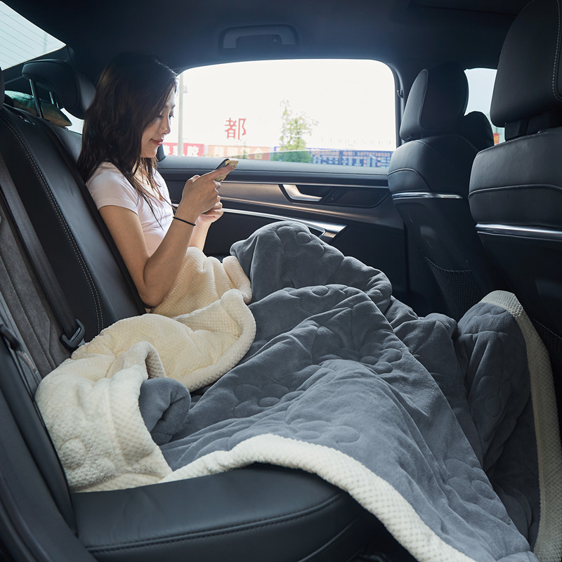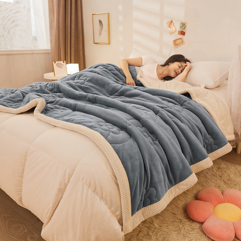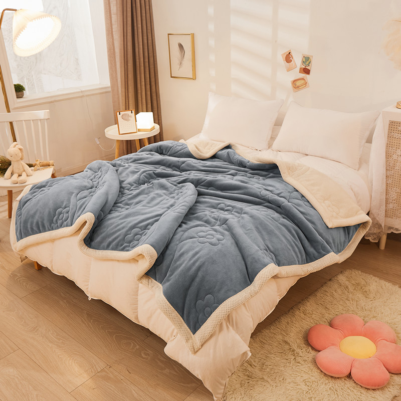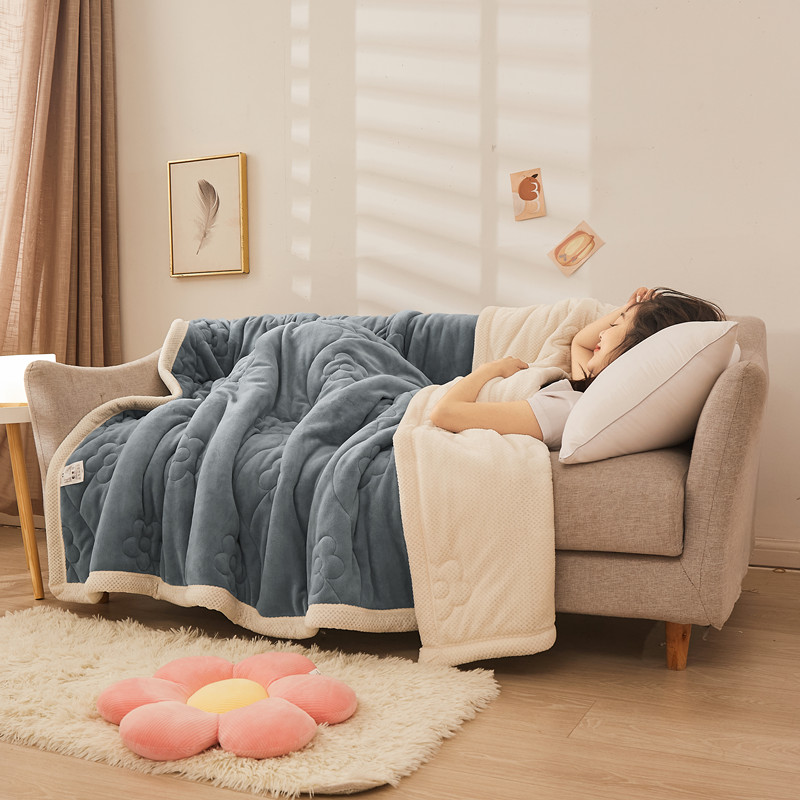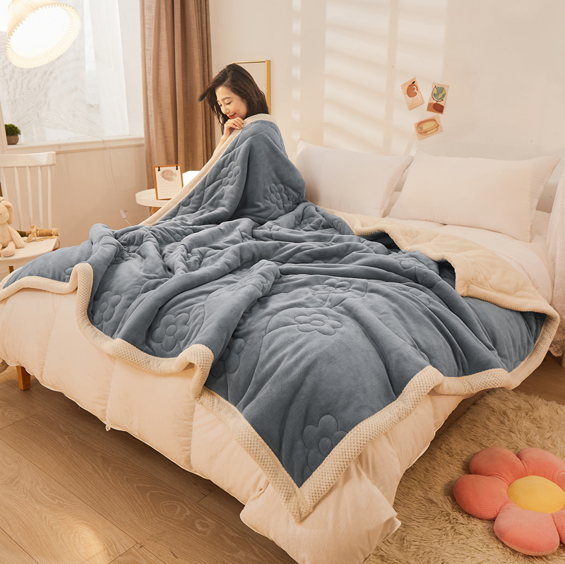 苏拉 2023新款牛奶绒夹棉绗绣三层毯 灰色