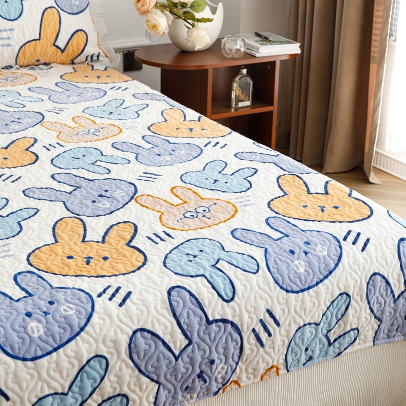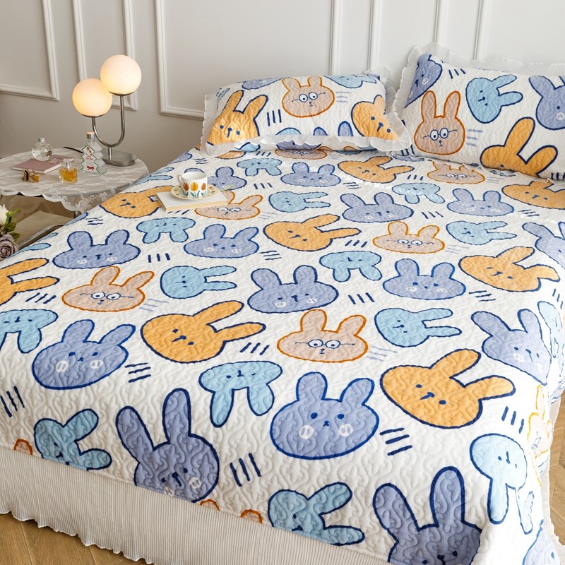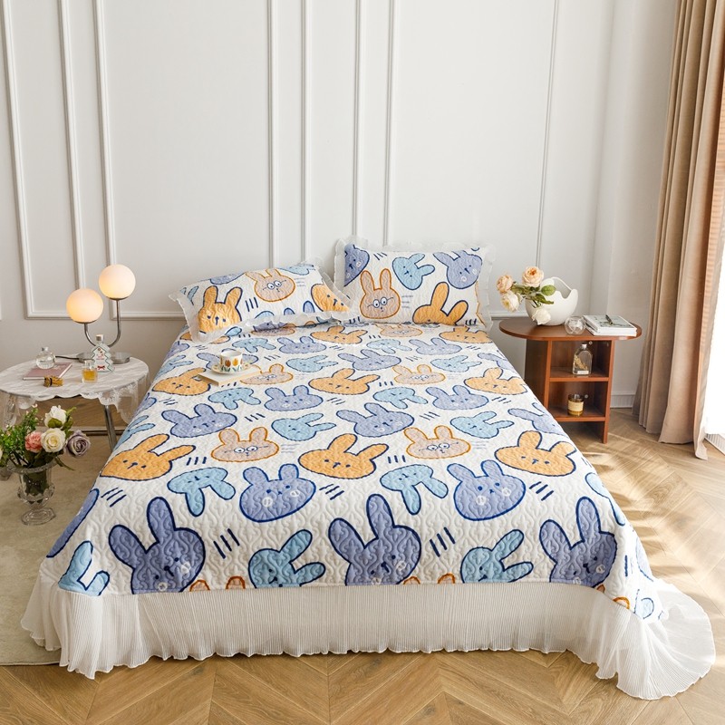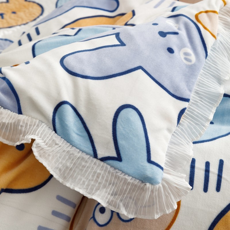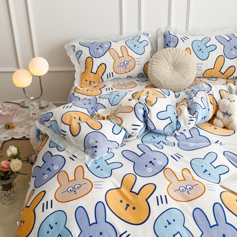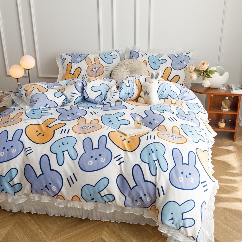 北纬27度 2022新雪纺花边印花牛奶绒床盖款四件套直播爆款 兔奇-白