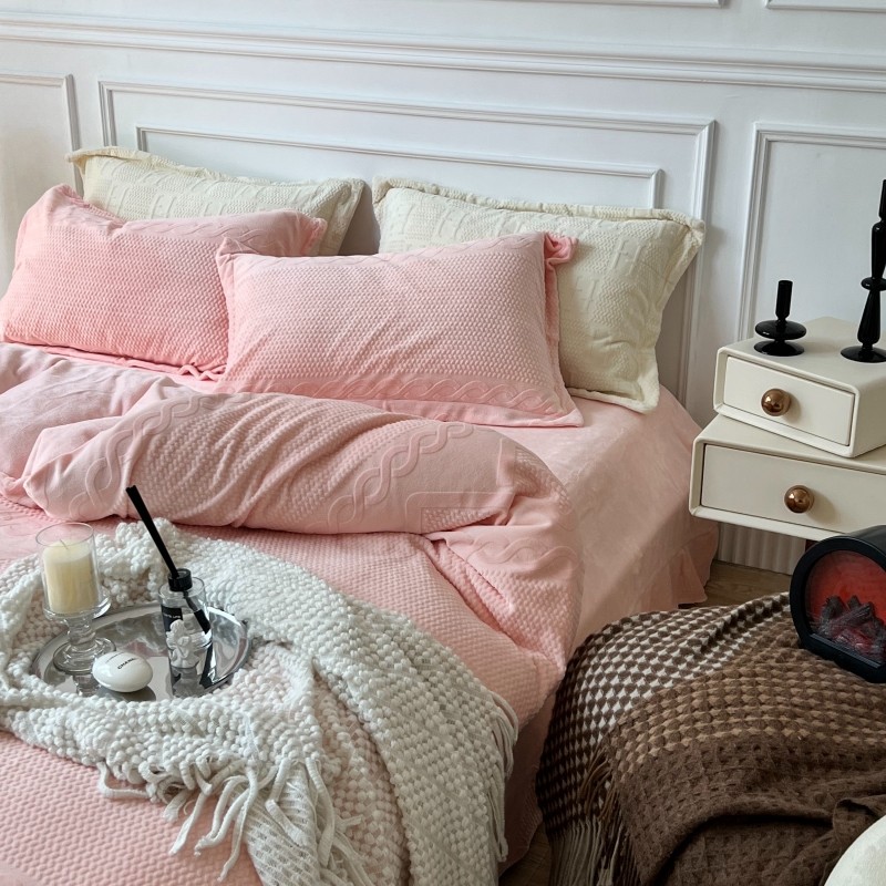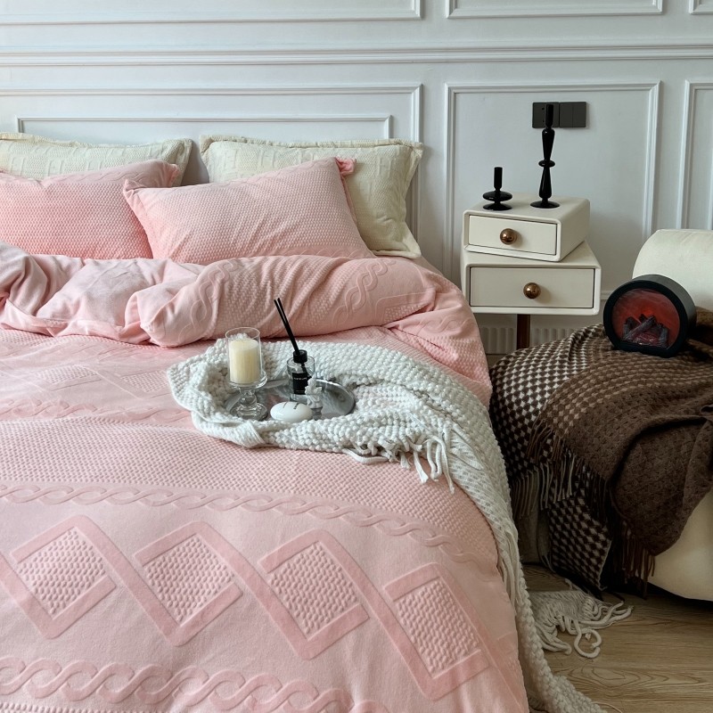 商品名称:安莱生活 2022新款牛奶绒雕花210克重丽芙系列 蔷薇粉