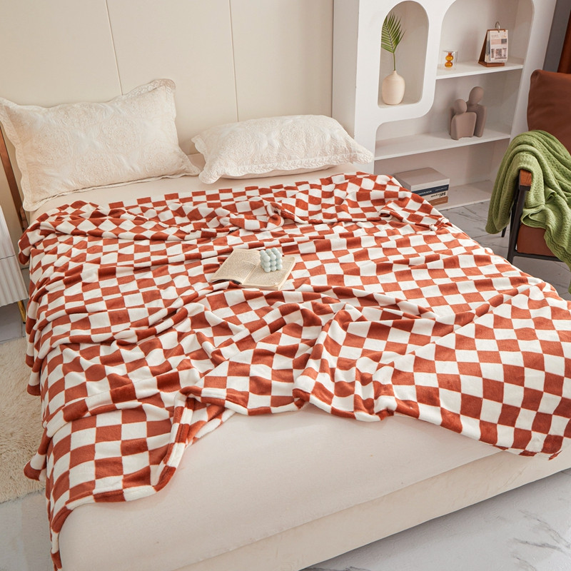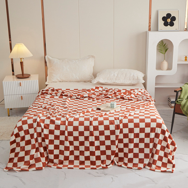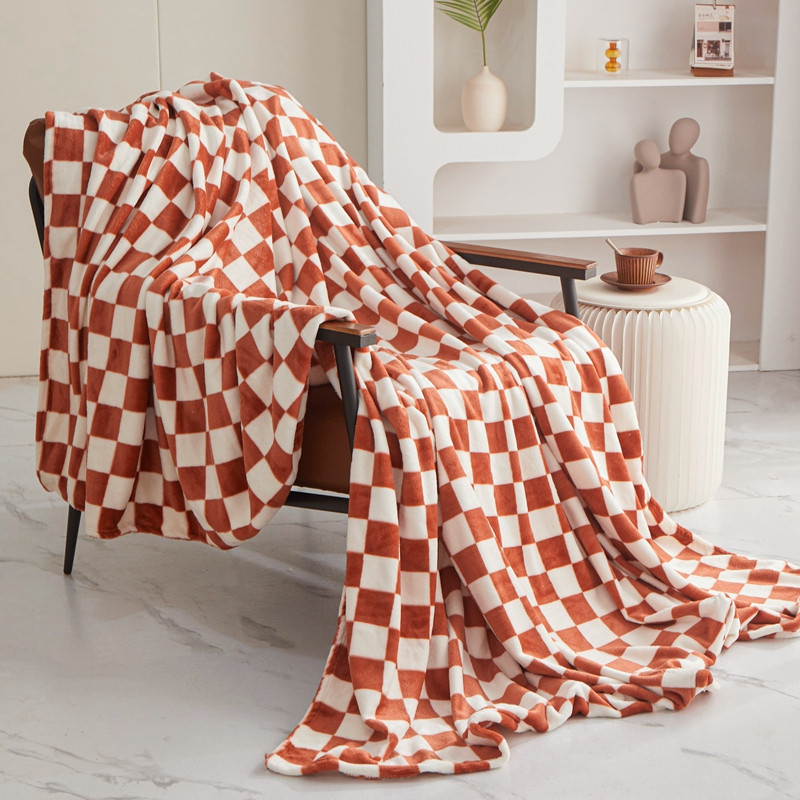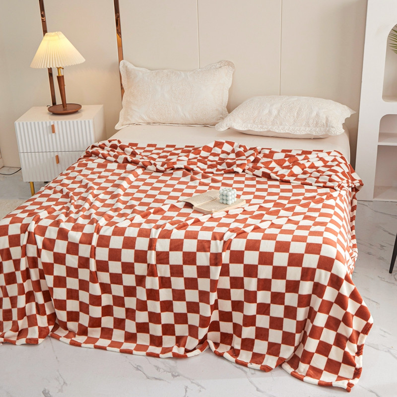 商品名称:新丽佳2022新款法兰绒棋盘格毛毯 红咖格