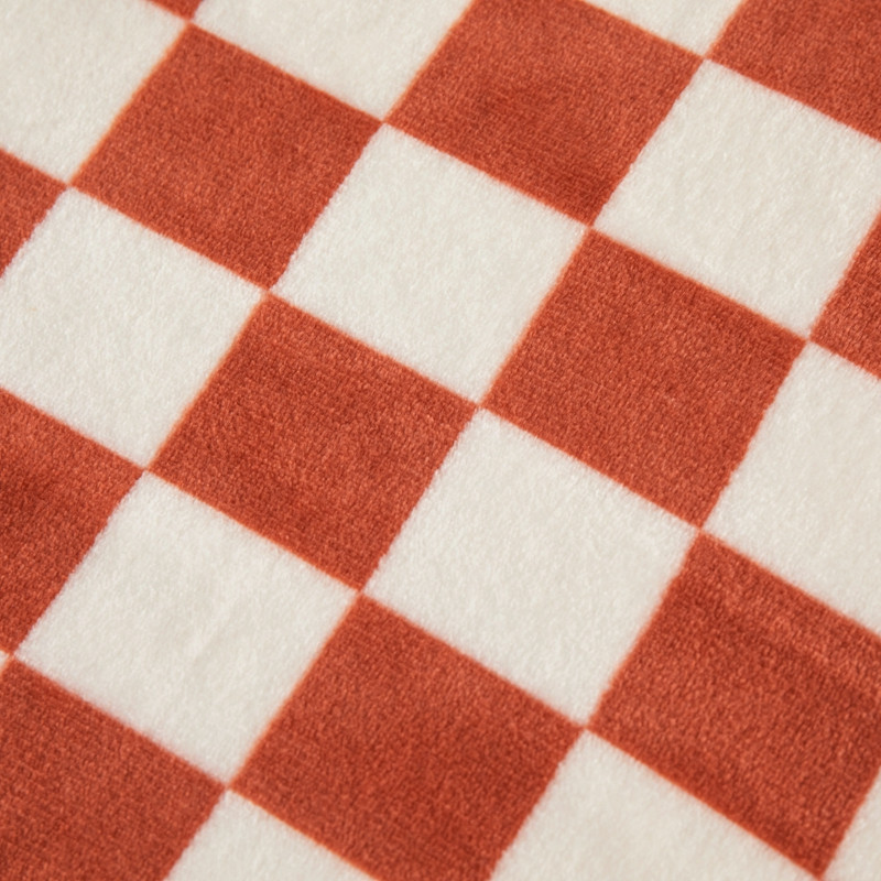 新丽佳2022新款法兰绒棋盘格毛毯 红咖格