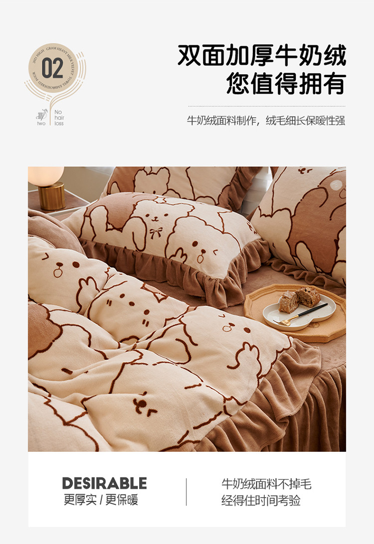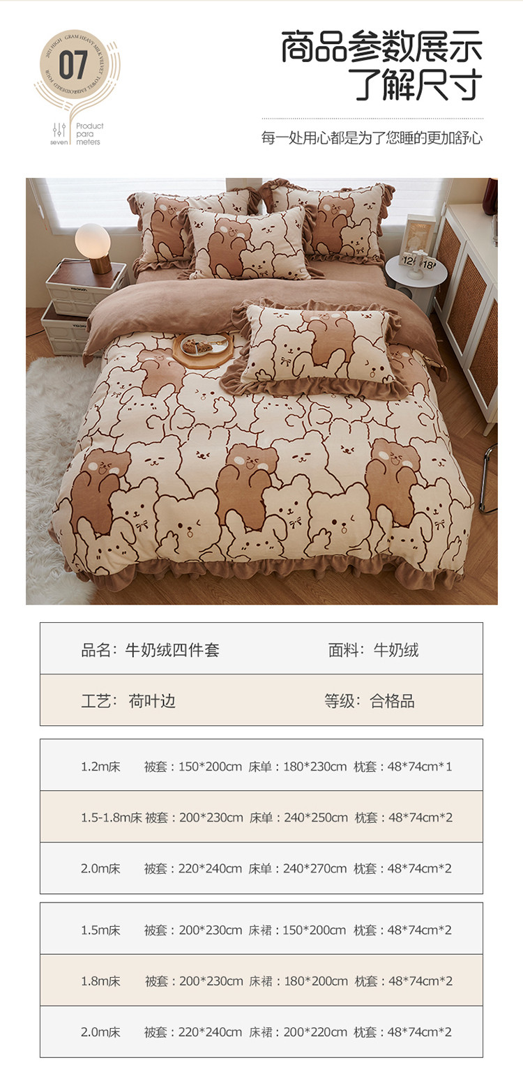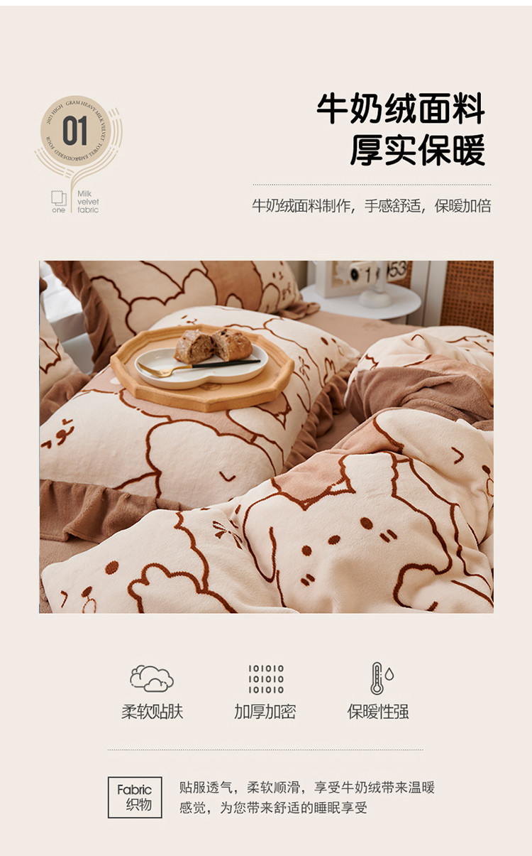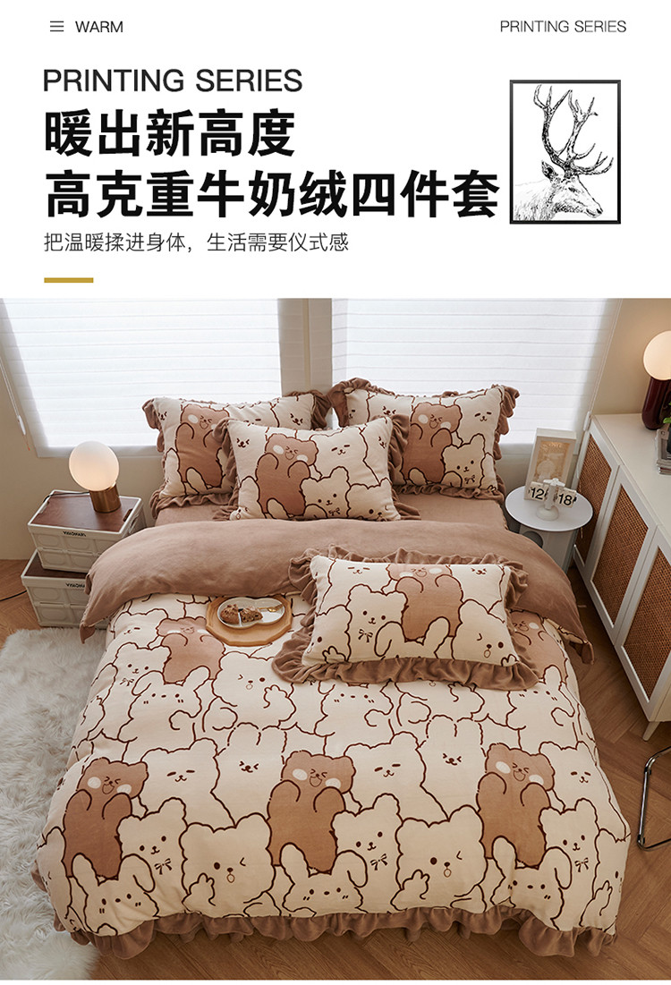 当前位置: 91家纺网 > 商品网购 > 床品套件 > 四件套 > 牛奶绒四件套 > 2023新款 包小包高克重小清新印花花边牛奶绒四件套好朋友们