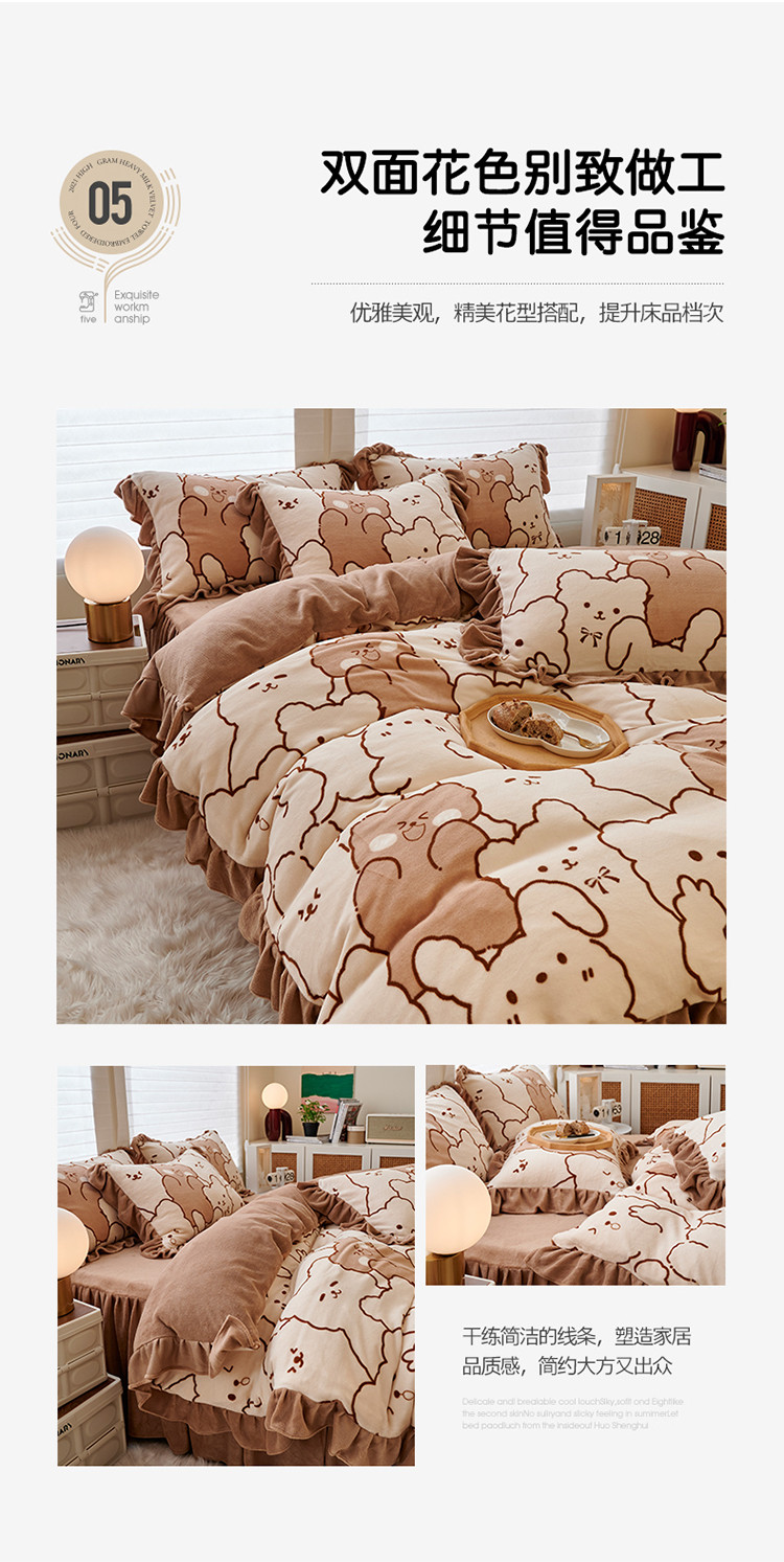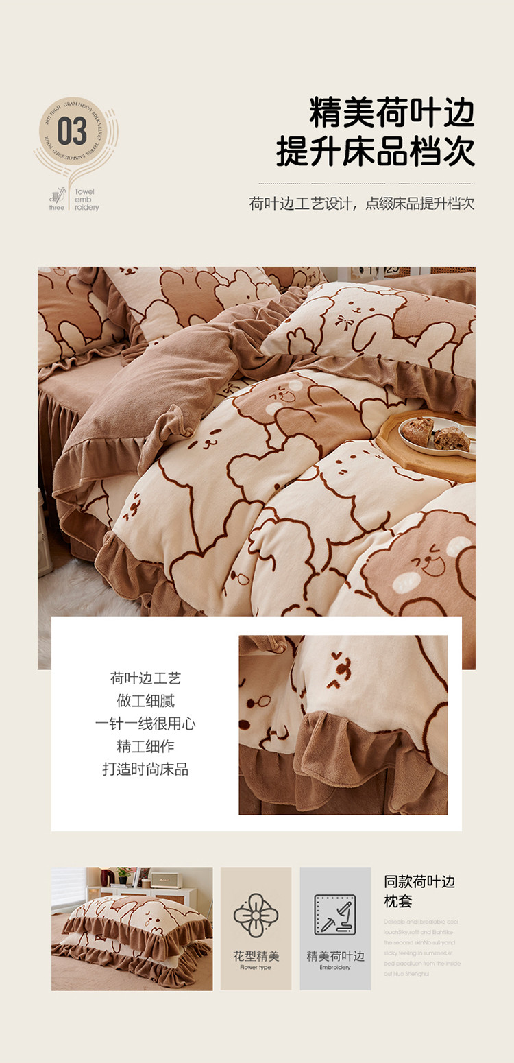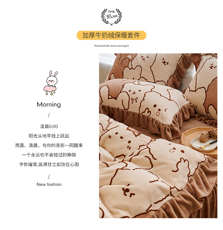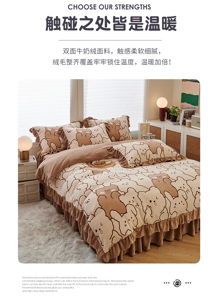 当前位置: 91家纺网 > 商品网购 > 床品套件 > 四件套 > 牛奶绒四件套 > 2023新款 包小包高克重小清新印花花边牛奶绒四件套好朋友们