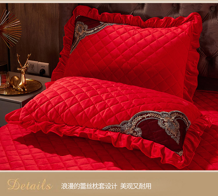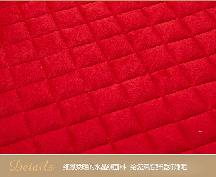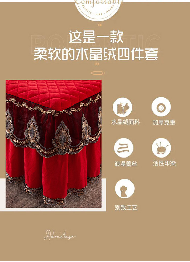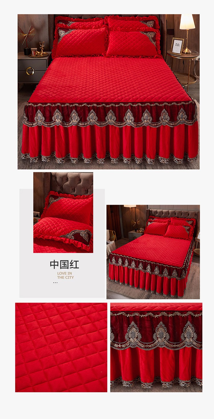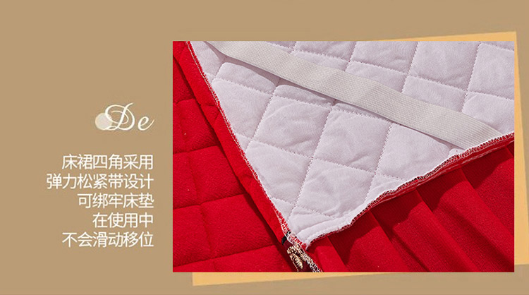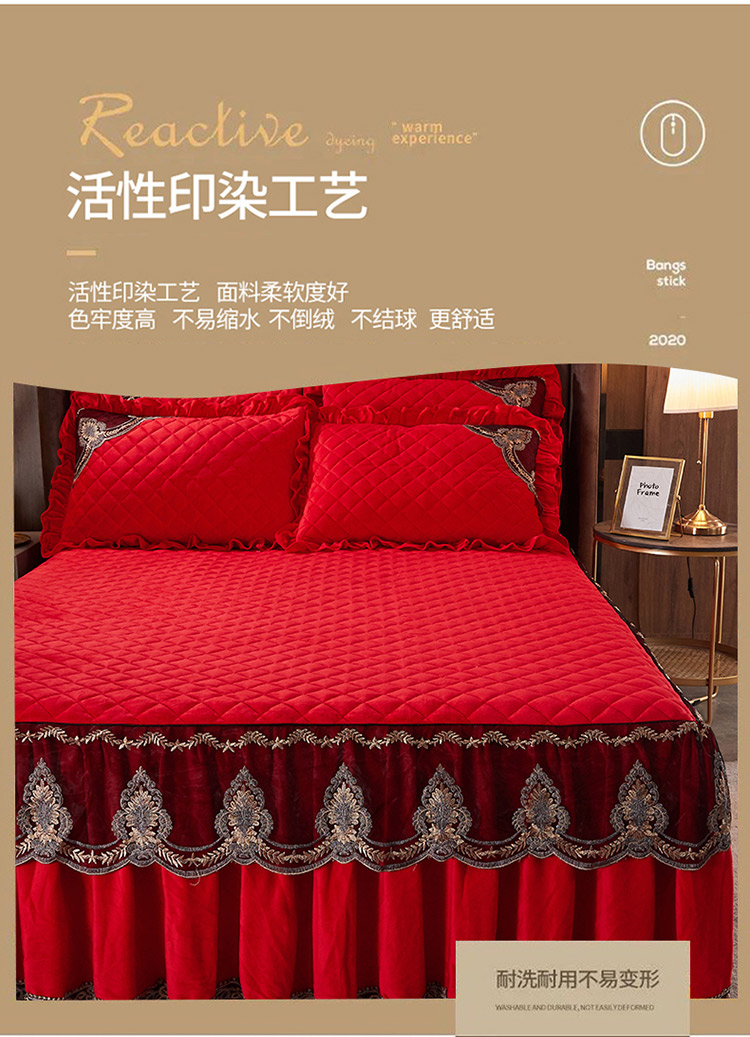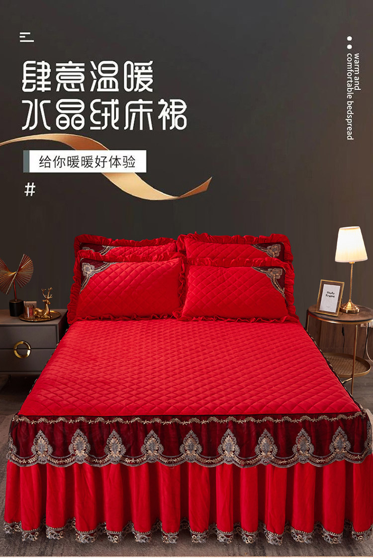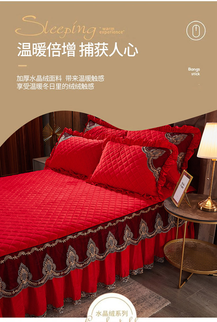 商品名称:家之硕 2022新款水晶绒夹棉床裙三件套系列-幸运花 中国红