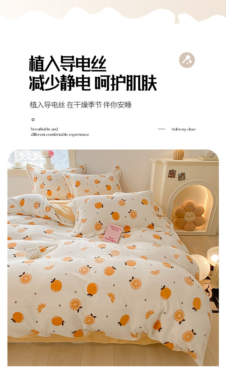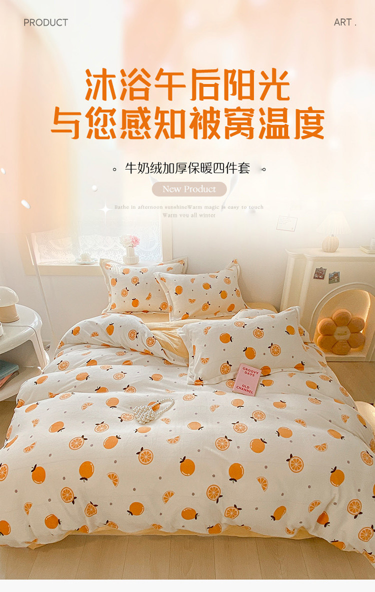 商品名称:沐慕 2022新款牛奶绒四件套 小橙子